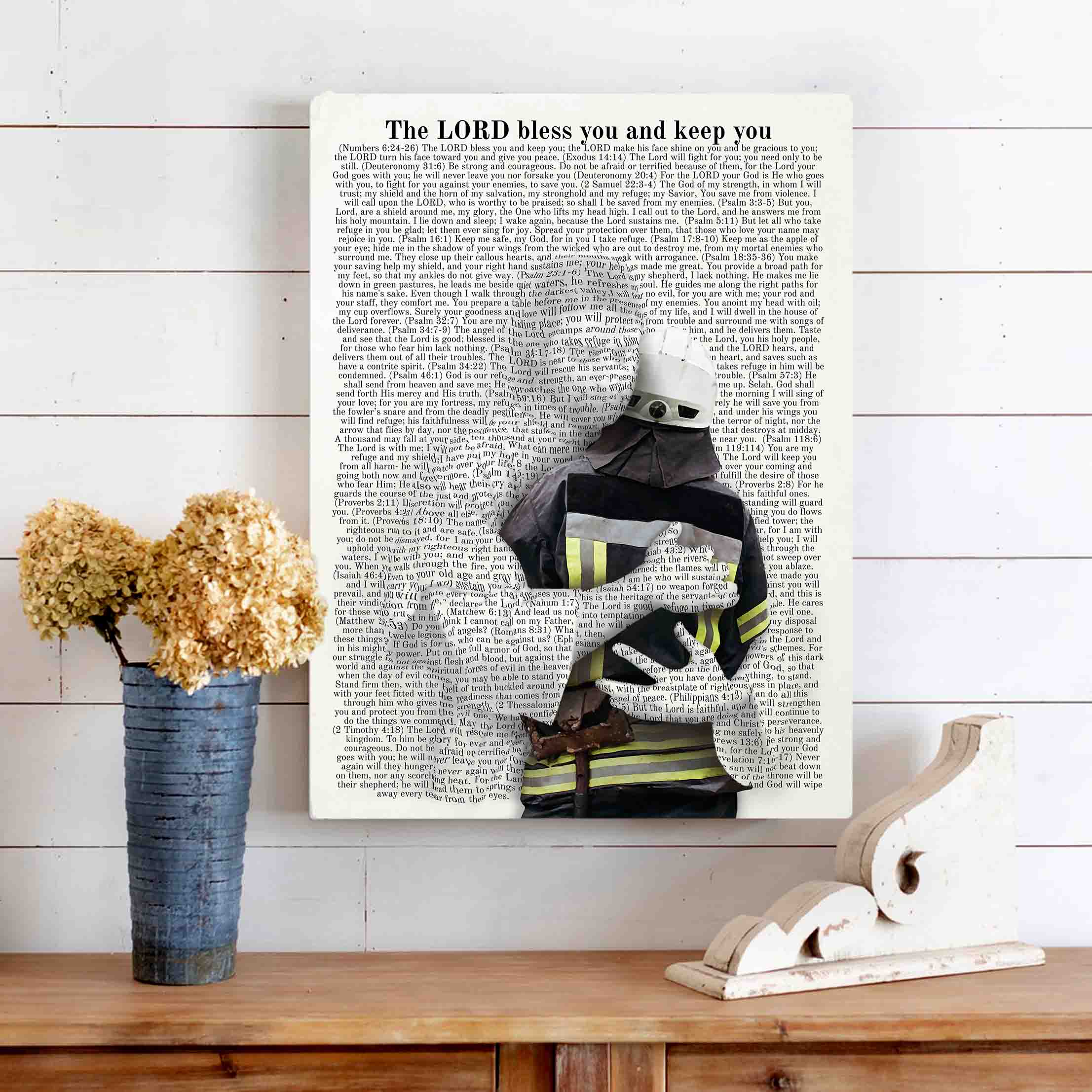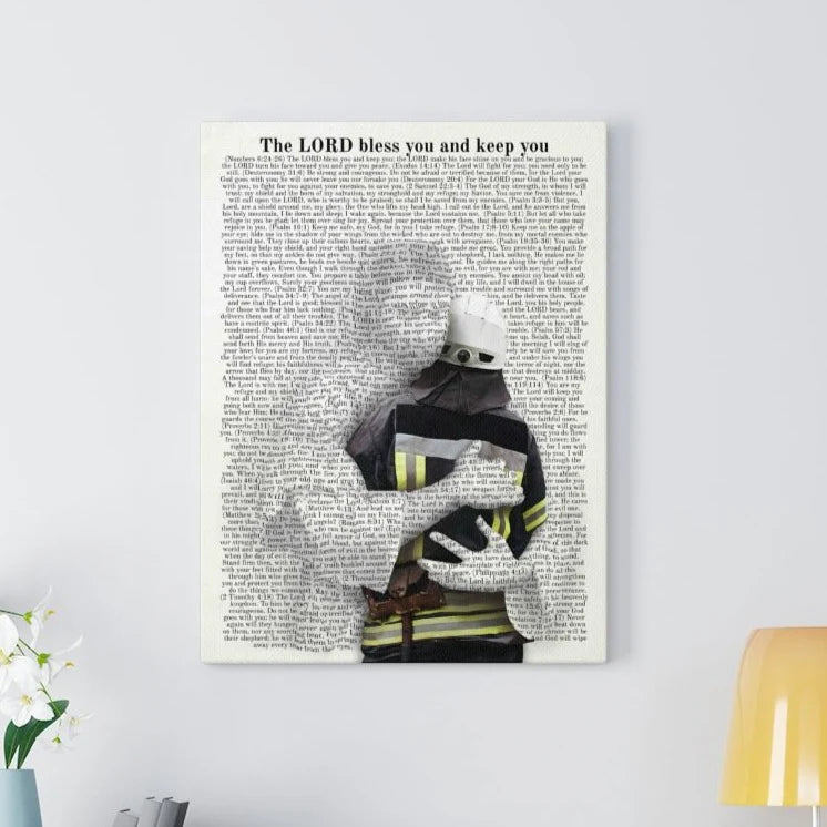 This artwork contains 70 bible verses about Protection, starting from (Numbers 6:24) The LORD bless you and keep you, followed by biblical order from old testament to new testament, ending with Revelation. God's words are alive and active. We want firefighters to be reminded everyday that you are protected especially in this season.