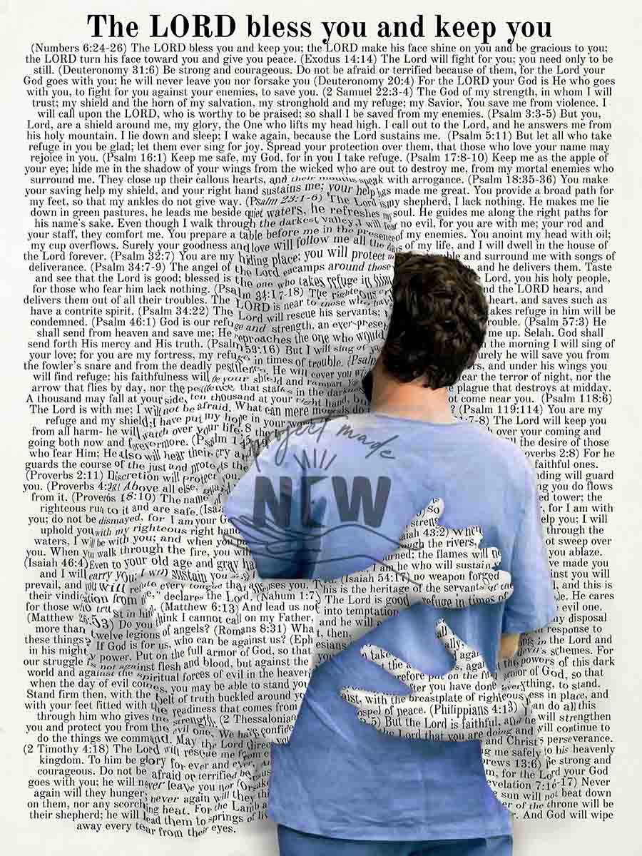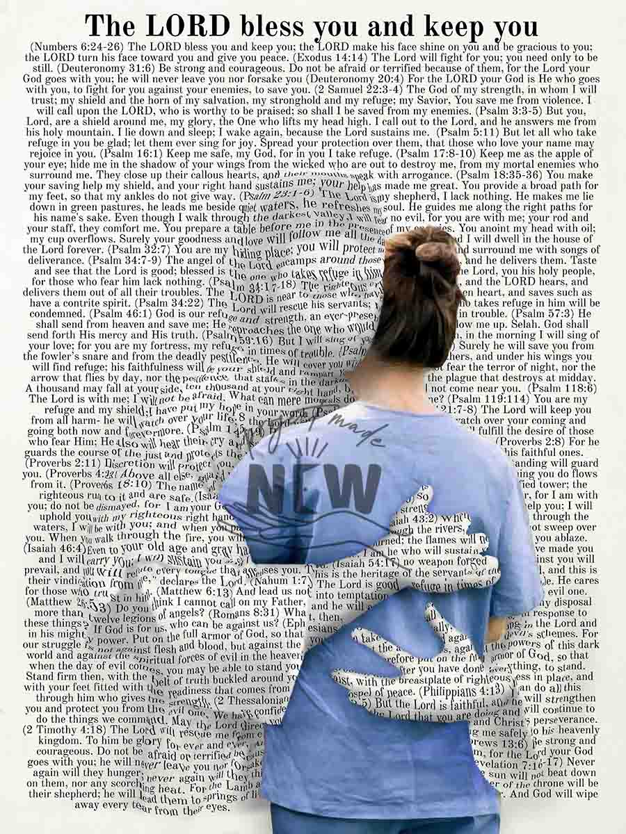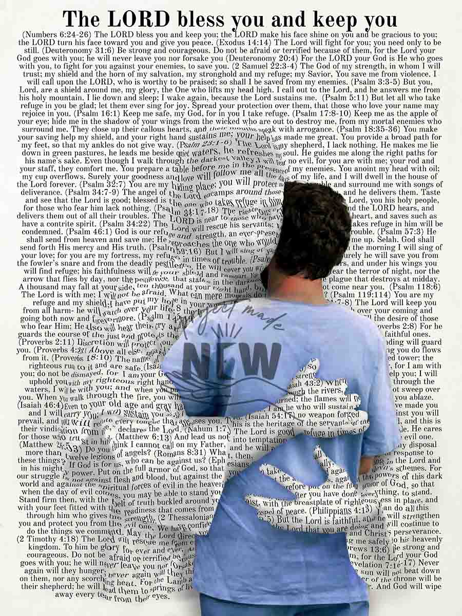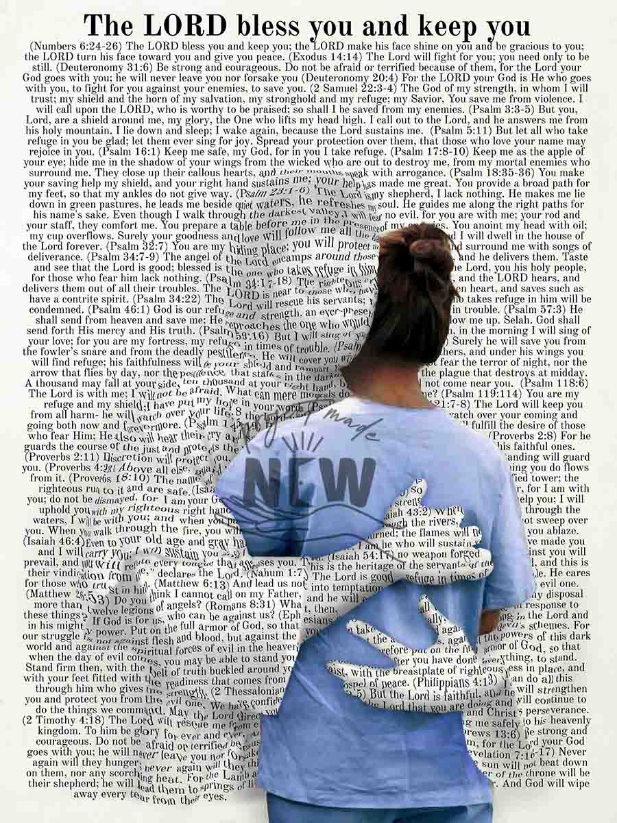 This artwork contains 70 bible verses about Protection, starting from (Numbers 6:24) The LORD bless you and keep you, followed by biblical order from old testament to new testament, ending with Revelation. God's words are alive and active. We want frontline nurses to be reminded everyday that you are protected especially in this season.