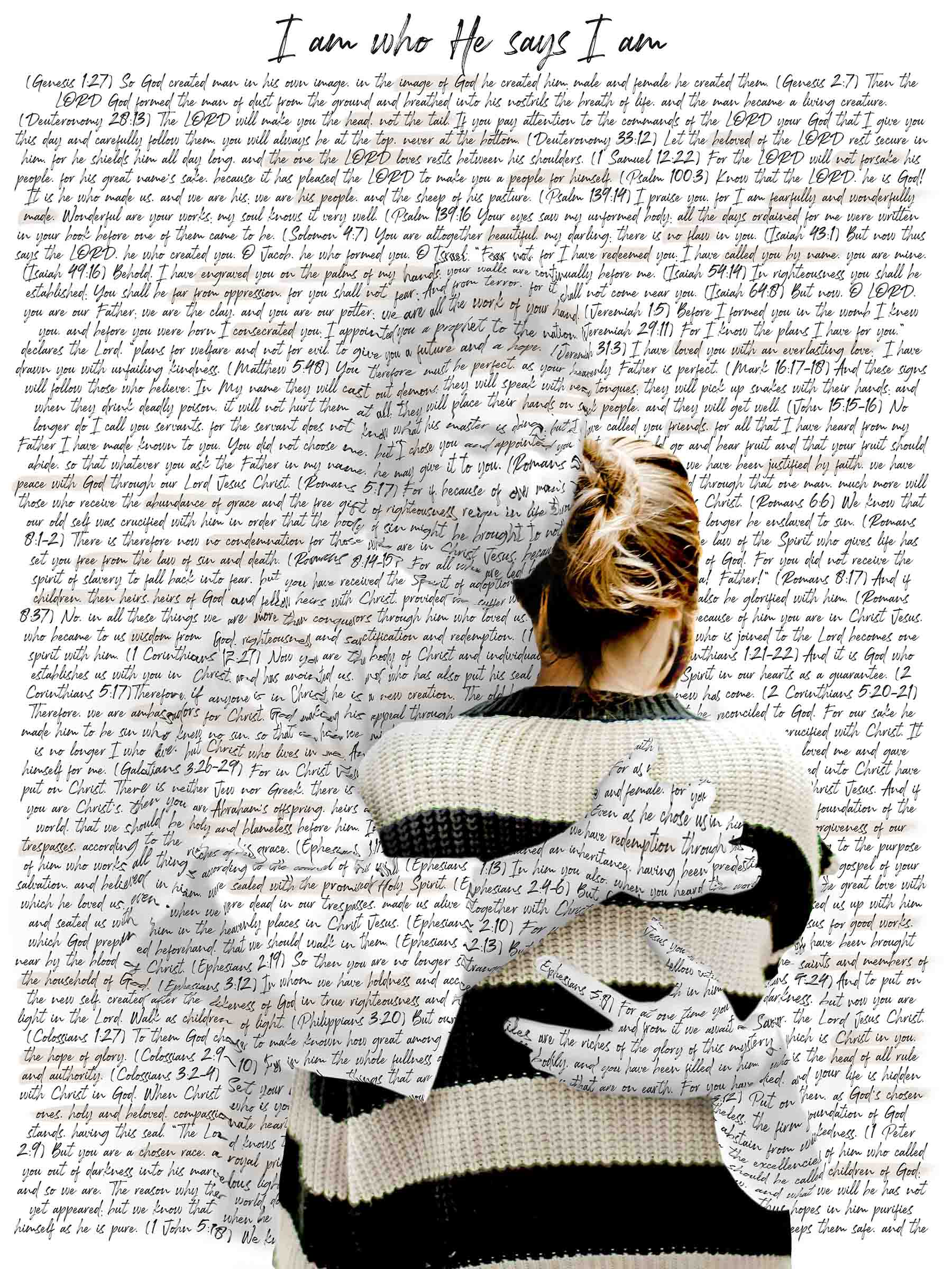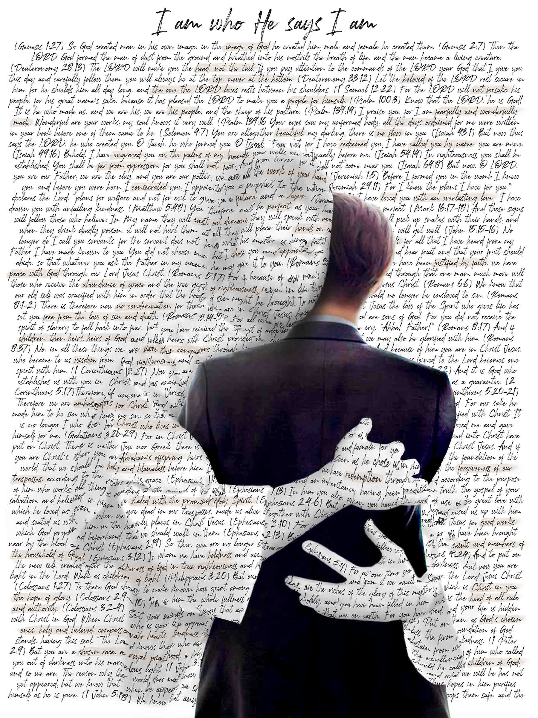Do you love God's words? Do you love Jesus? This is for you! This artwork contains 70 bible verses on identity, with highlighted keywords. God's words & Jesus coming to life to embrace you. We want you to be reminded everyday of your life of the truth of who you are. Only through knowing your God-given identity can it give you confidence, self-esteem, and awareness. It reveals to you your deeper purpose. Knowing who you are and Whose you change everything.