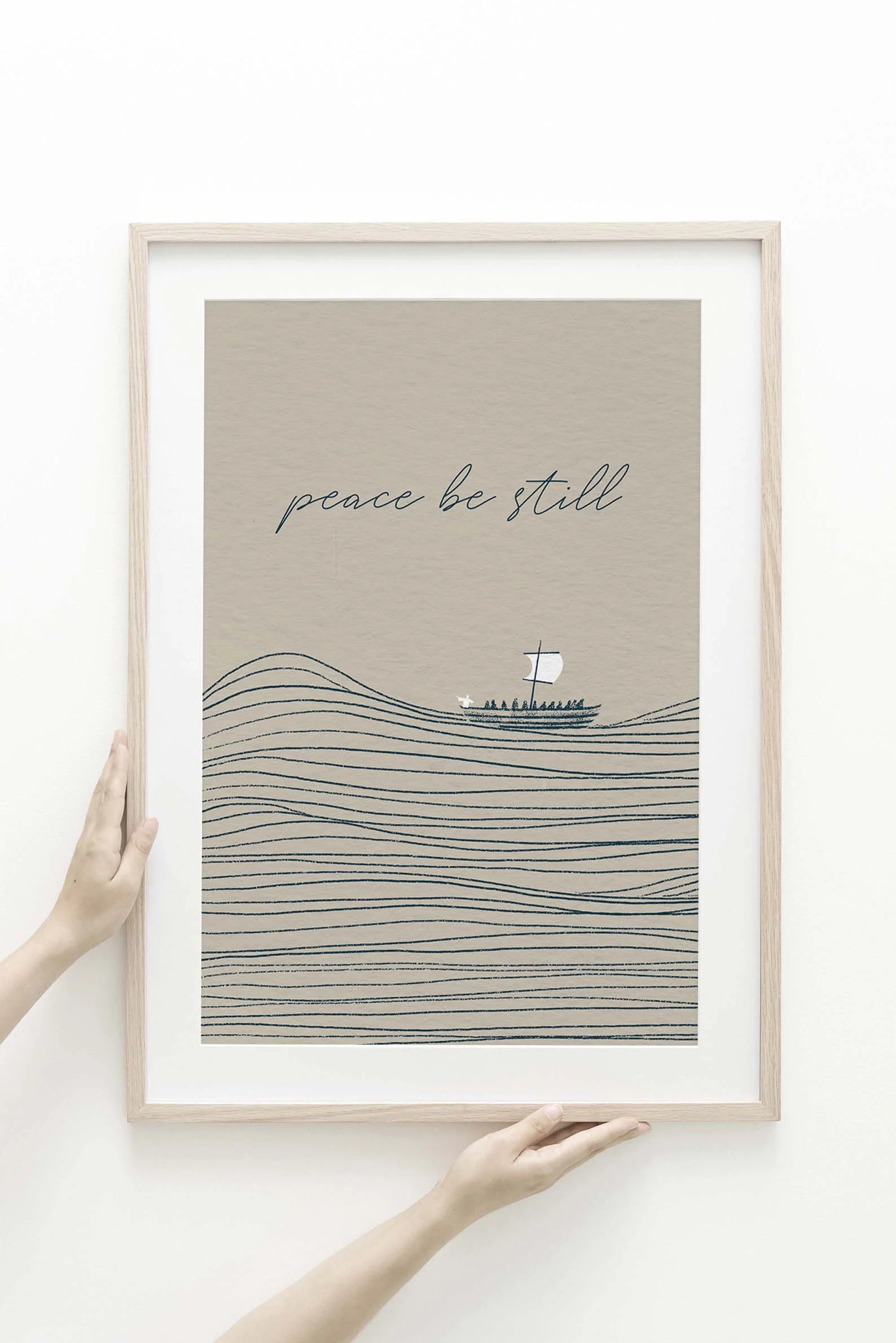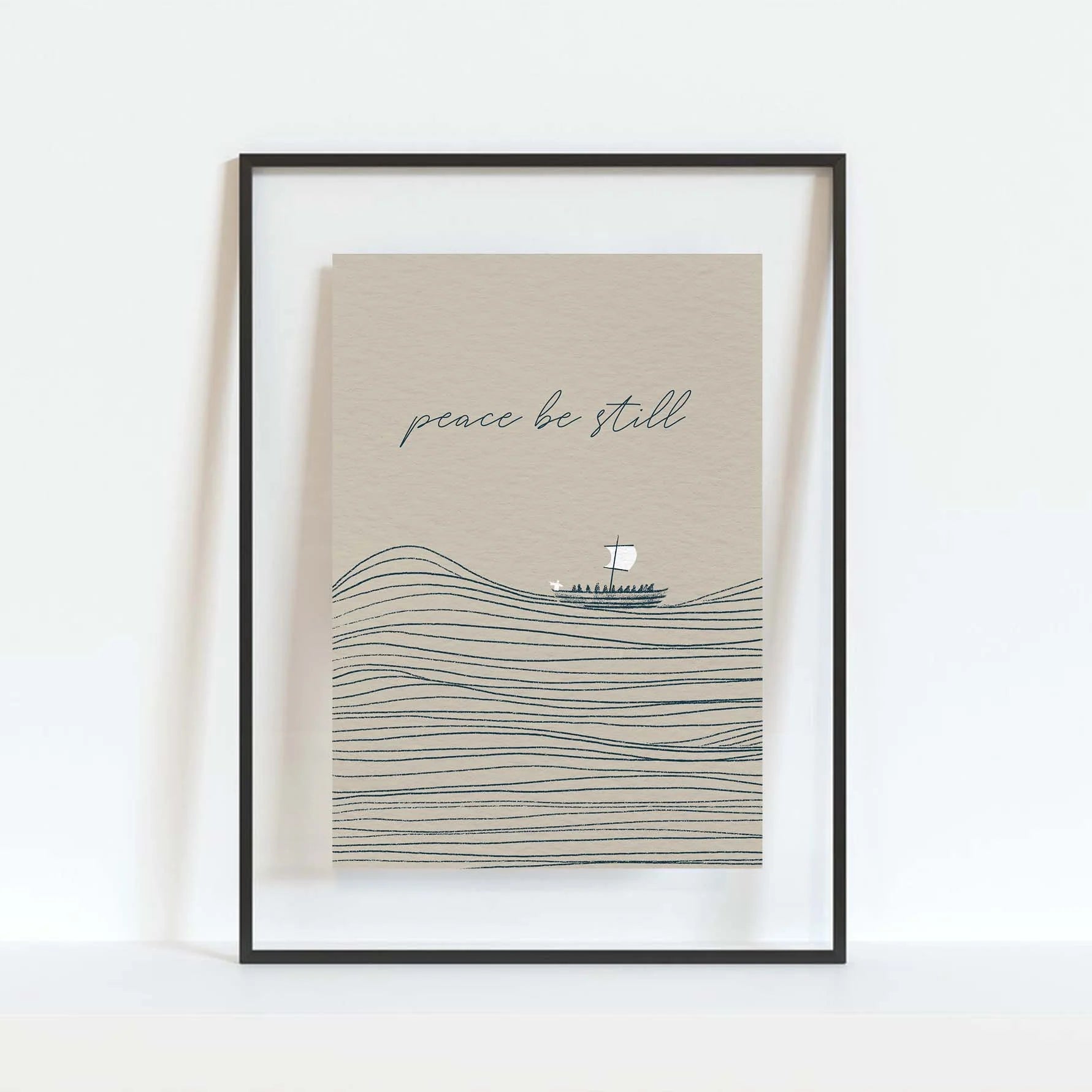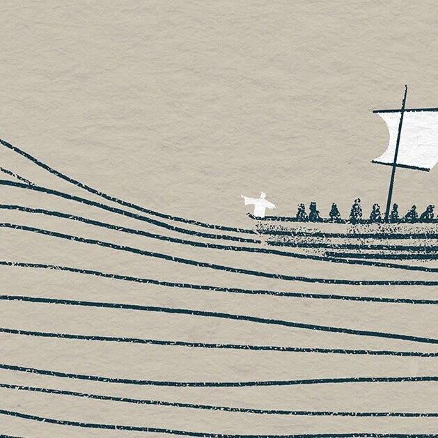 Minimalistic and modern digitally hand drawn art of Jesus calming the storm.