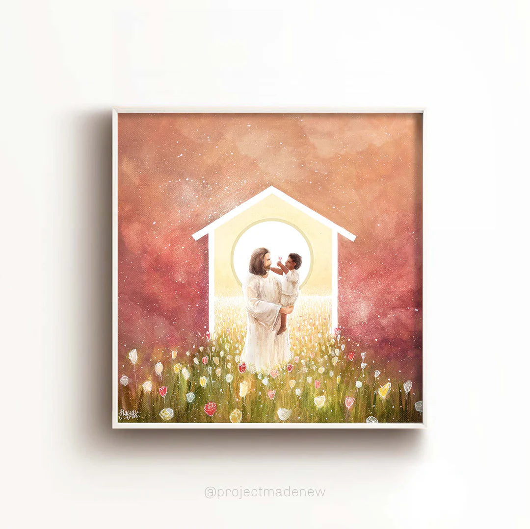This artwork features an acrylic illustration of Jesus and a black child, to show Jesus loves all regardless of skin color. This artwork supports black lives matter movement. This artwork is a great gift to anybody who needs to be reminded of God's beauty and the joy to be in His house. It may also be something you want to remind yourself of on a daily basis by putting it up on your wall.