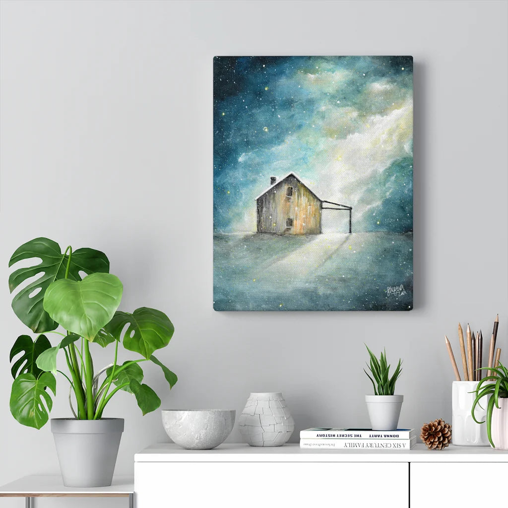 This artwork features a warm home in a cold atmosphere in acrylic illustration. This artwork is a great gift to anybody who needs to be reminded of warm in the cold. It may also be something you want to remind yourself of on a daily basis by putting it up on your wall.