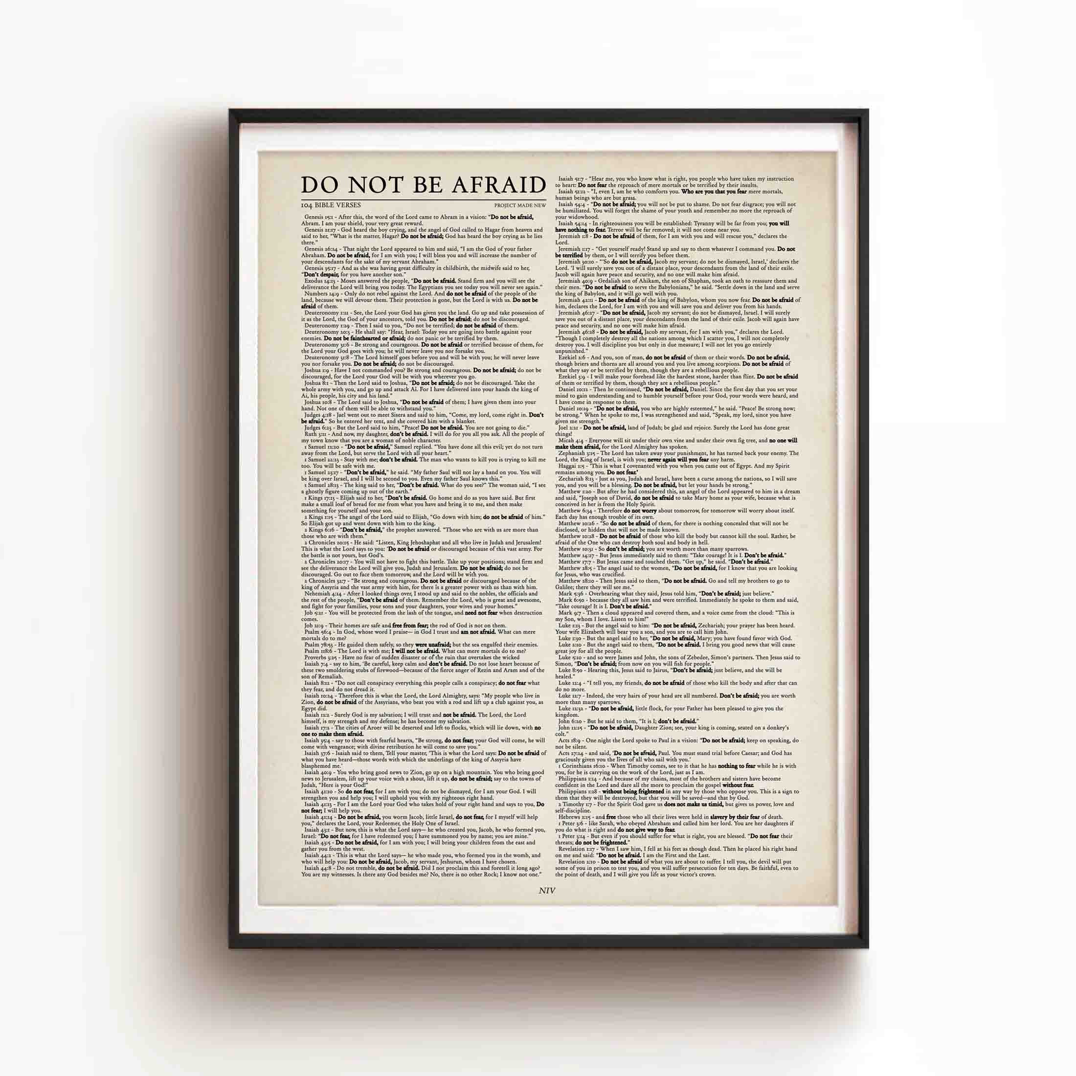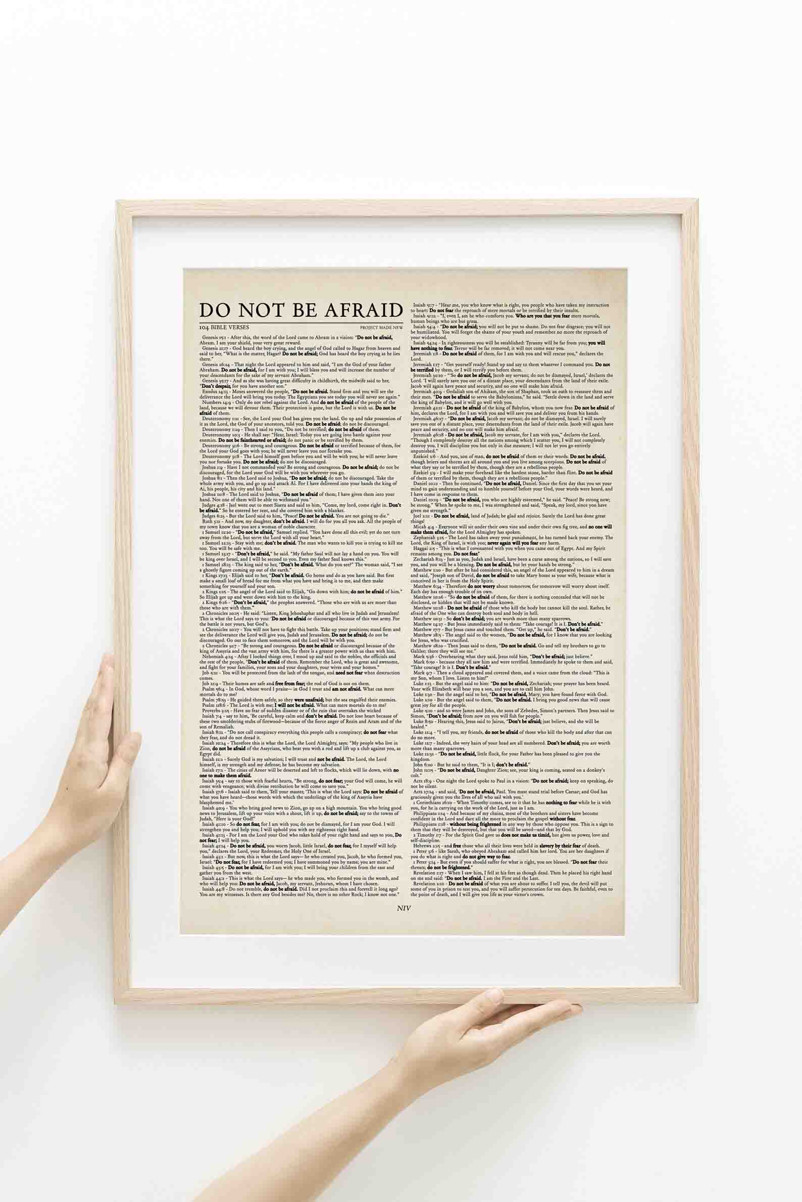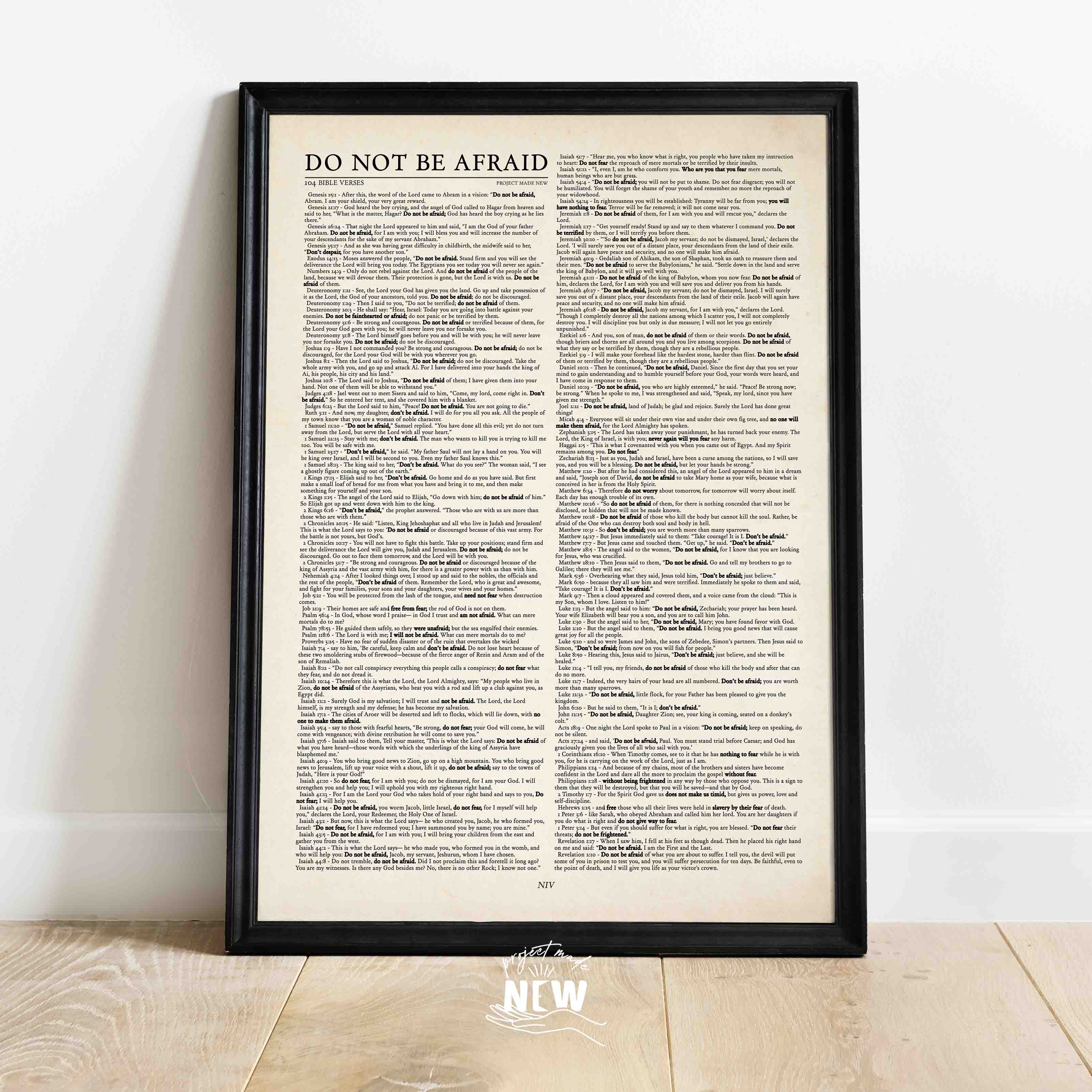 We have specially studied and put together 104 bible verses (NIV Version) of God reminding us not to be afraid with highlighted keywords. We want you to be reminded every day and step out in faith and courage!