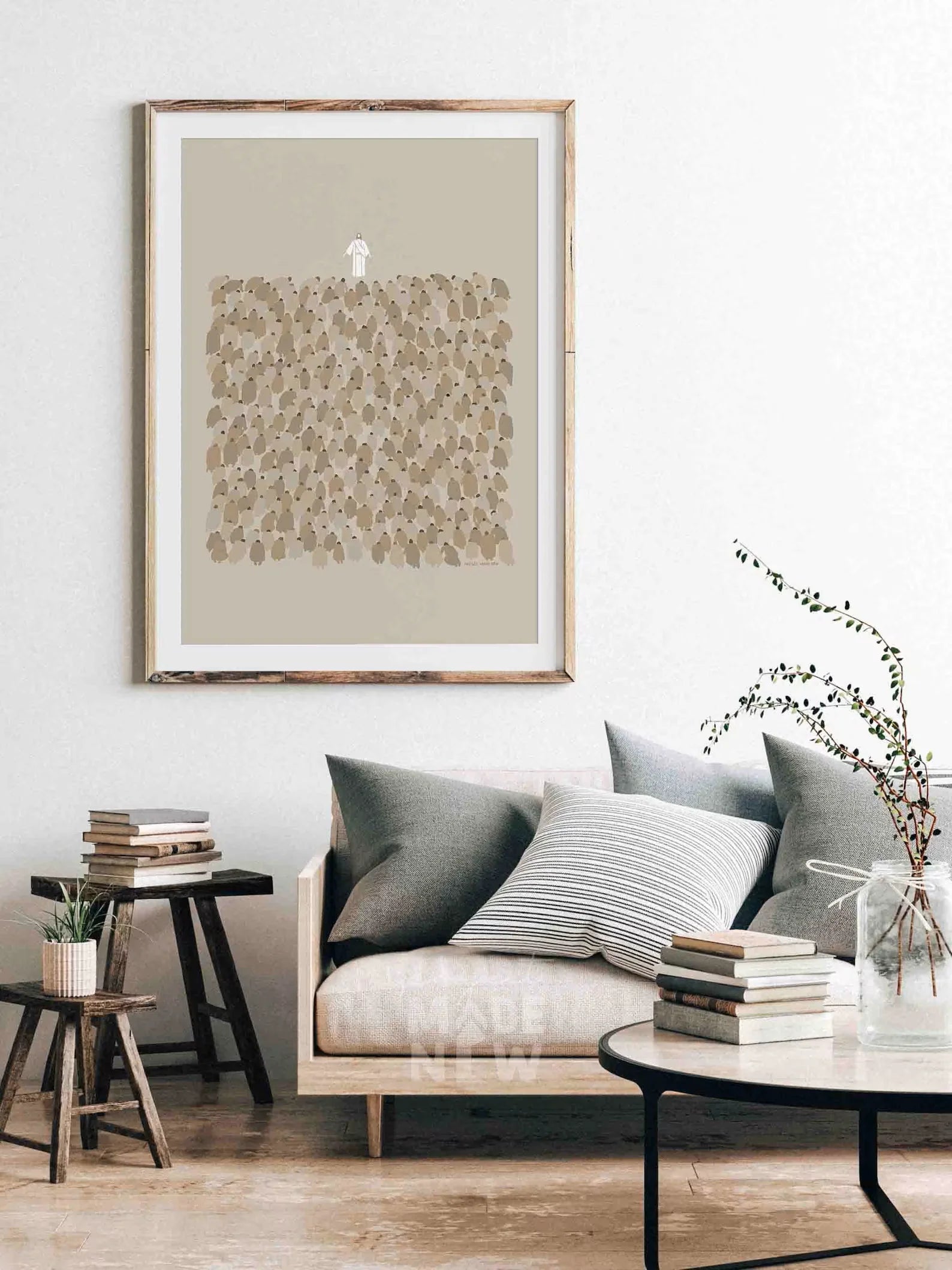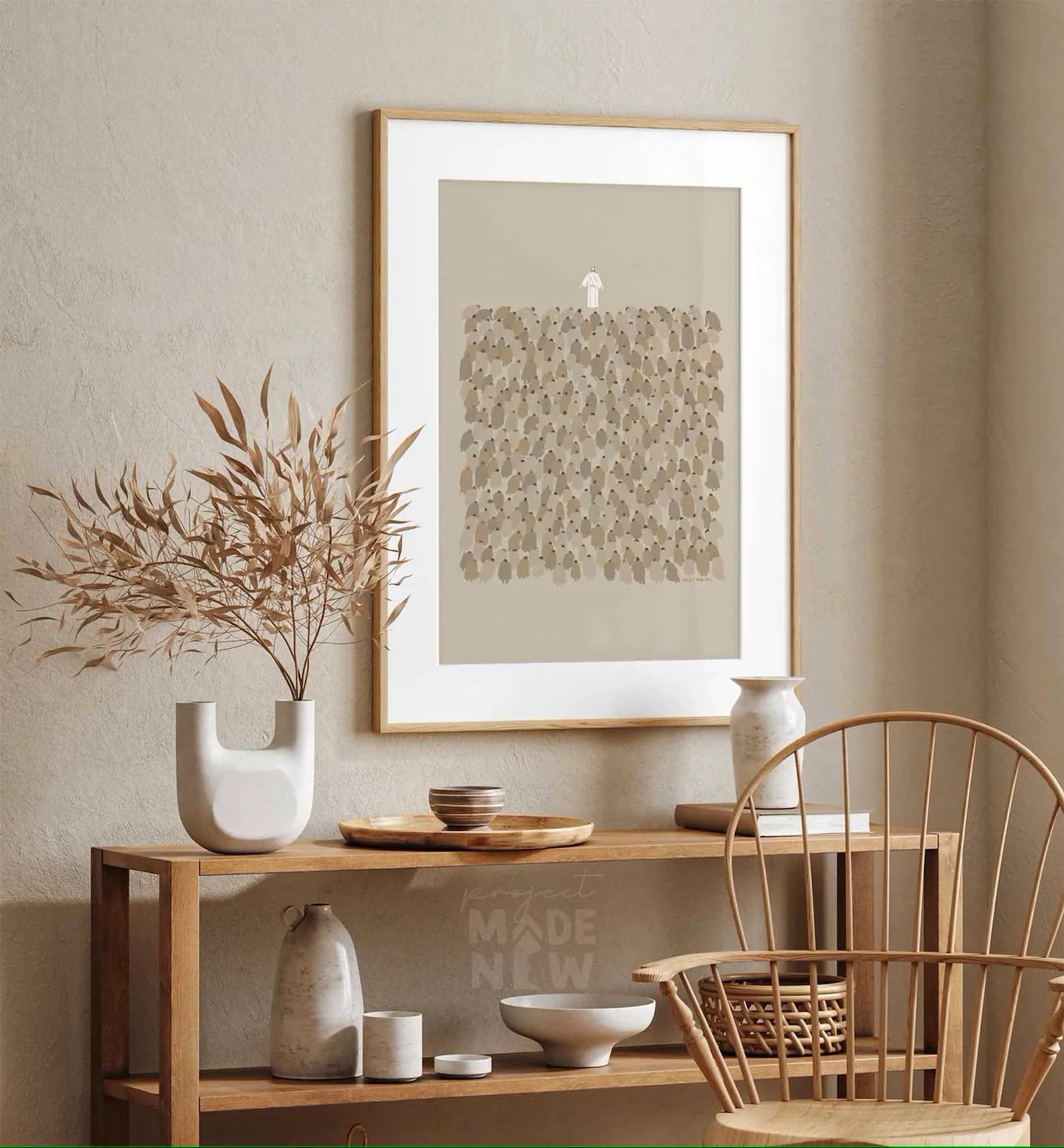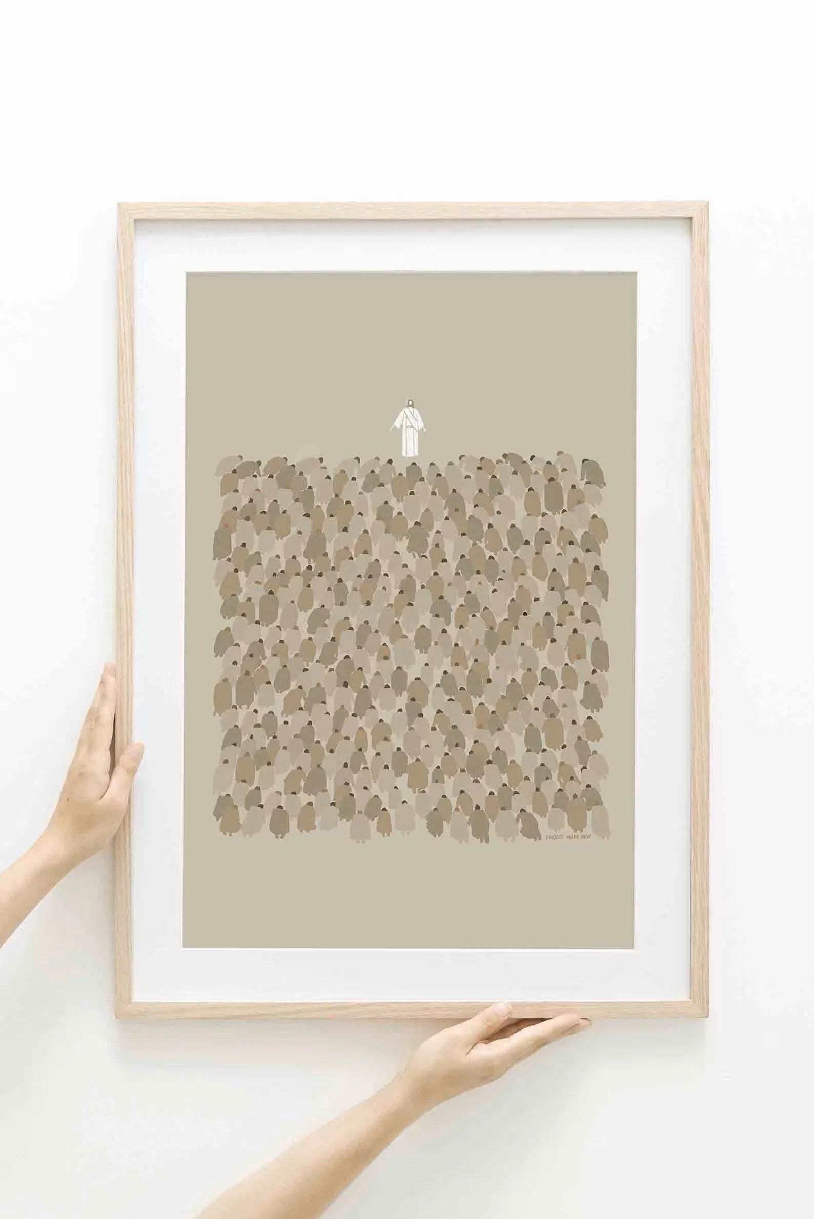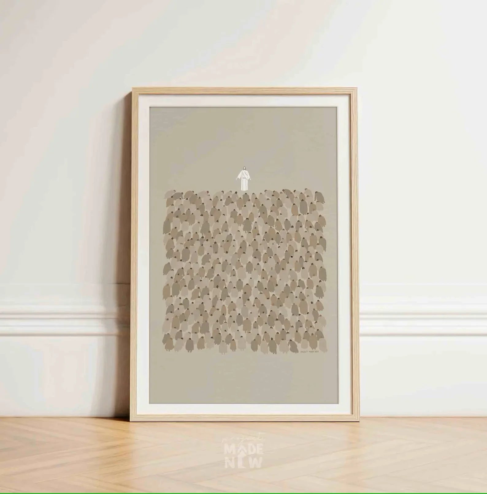 Minimalistic and modern biblical art of every knee bowing down to God in reverence. It emphasizes the universal lordship of Jesus Christ. All people, whether believers or unbelievers, will one day acknowledge Jesus as Lord. The reference to kneeling implies an act of submission and worship.