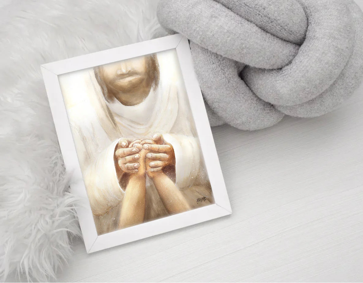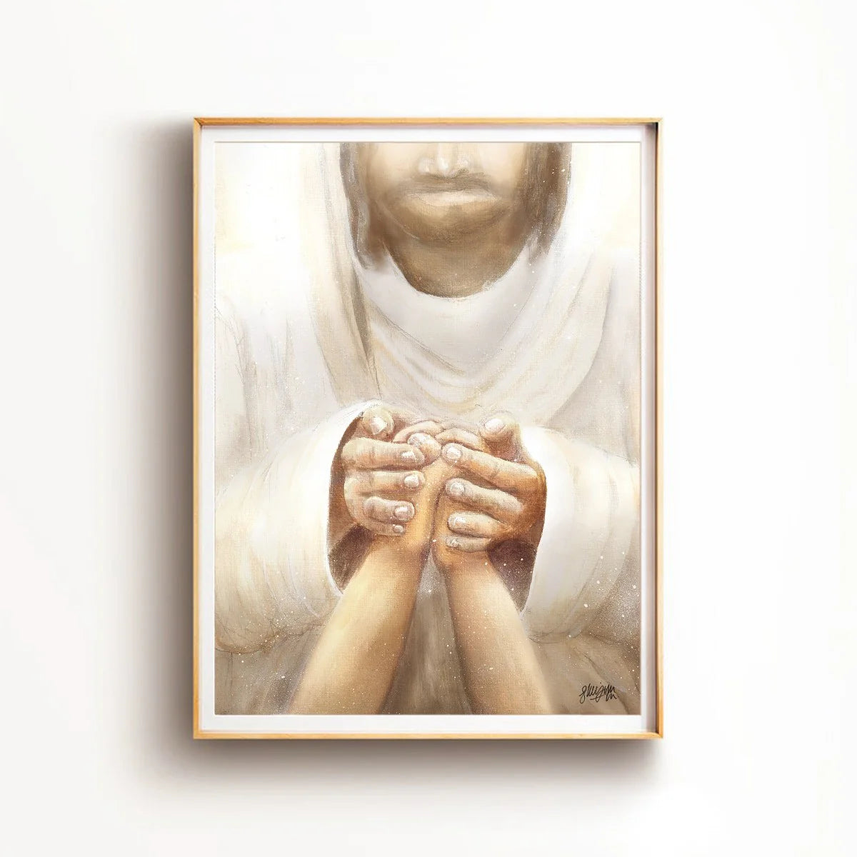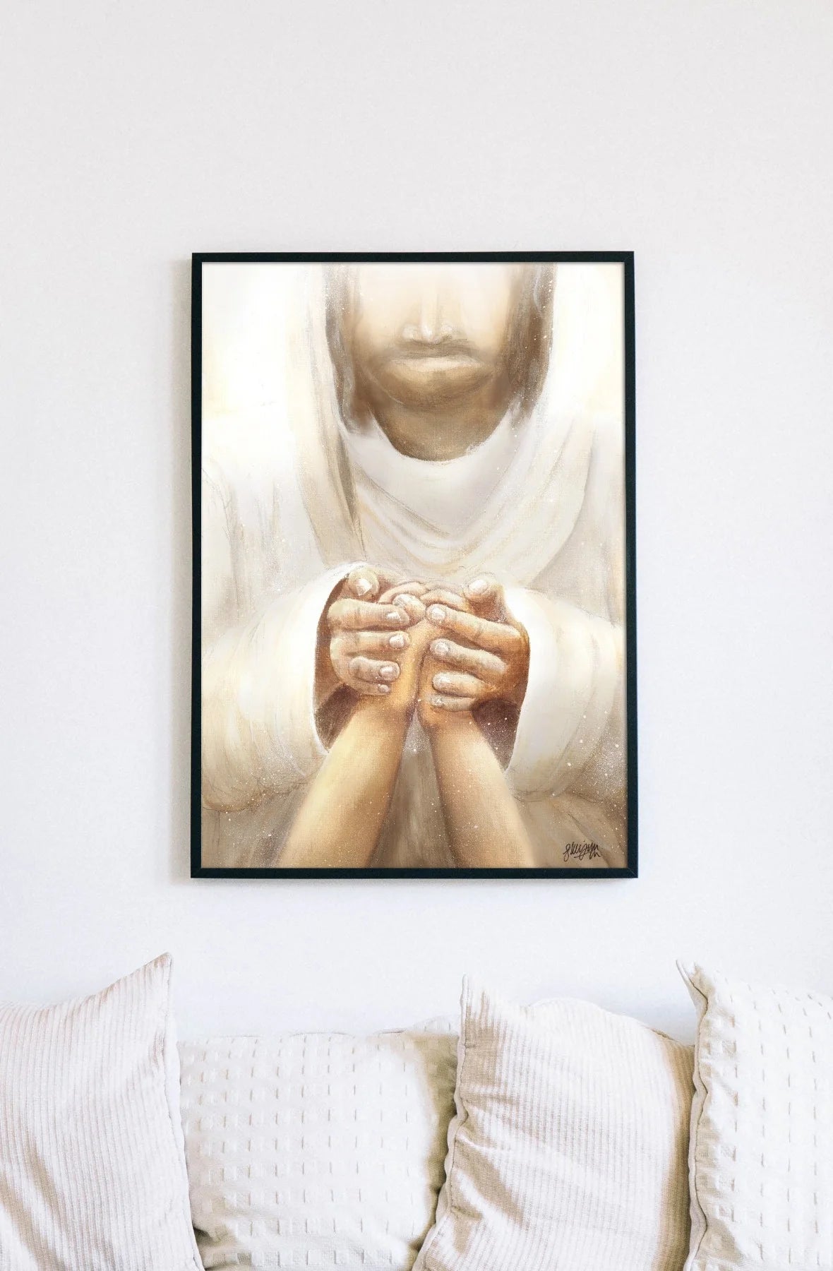 This artwork features an acrylic illustration of Jesus holding onto the hands of someone. This artwork is a great gift to anybody to remind them that God is always right beside them. It may also be something you want to remind yourself of on a daily basis by putting it up on your wall.