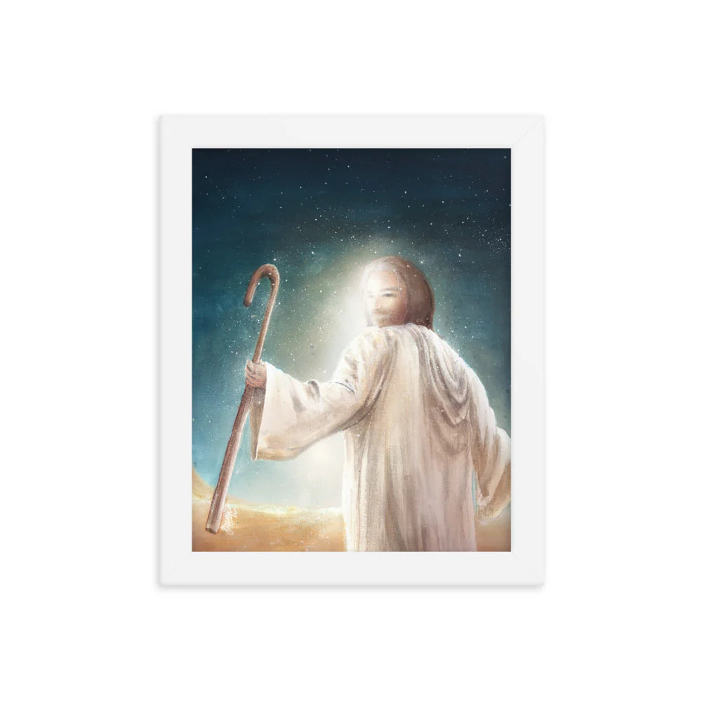 This artwork features a acrylic illustration of Jesus with his rod protecting us in the wilderness. This artwork is a great gift to anybody to remind them that God protects His people and some battles belong to the Lord, not ours to fight. It may also be something you want to remind yourself of on a daily basis by putting it up on your wall.