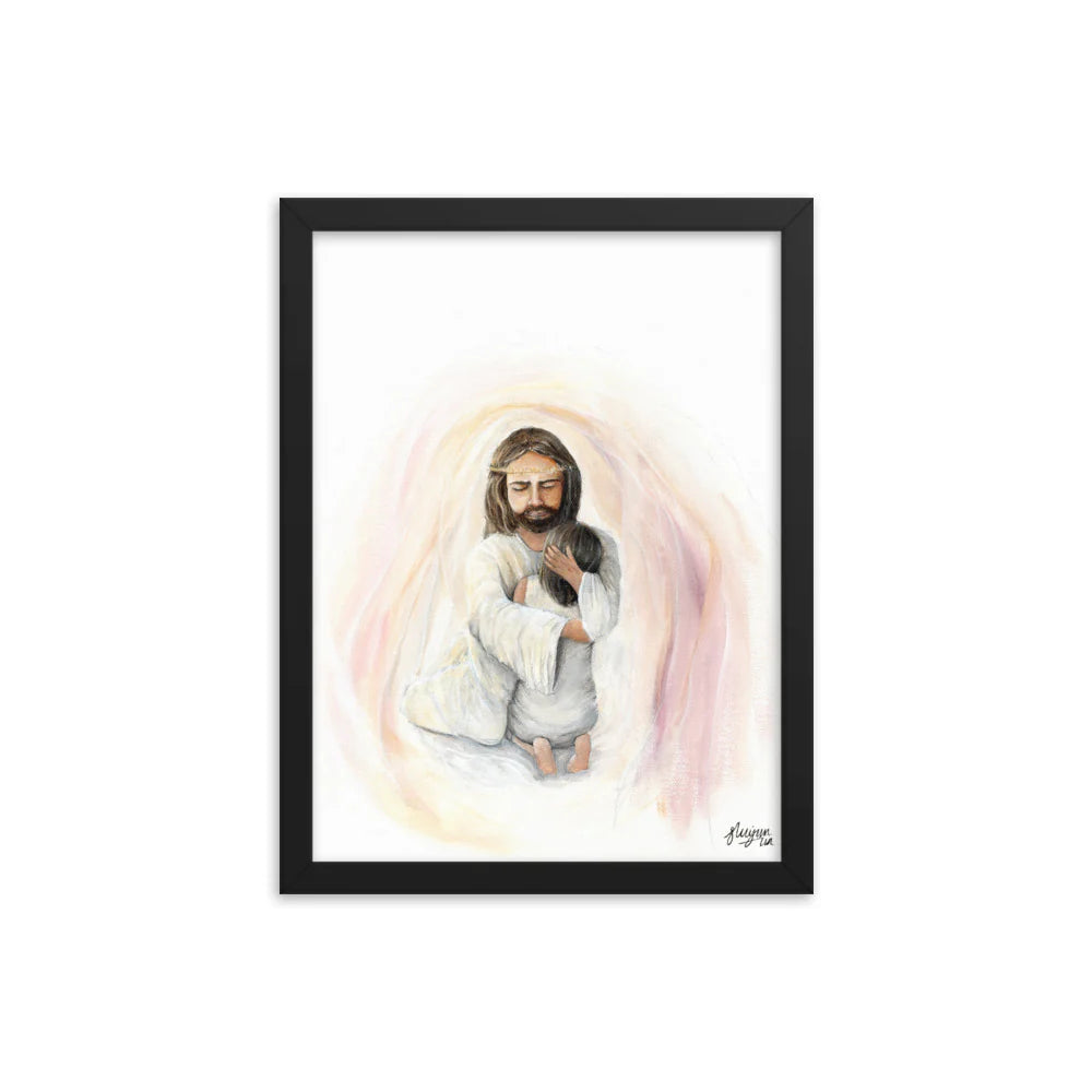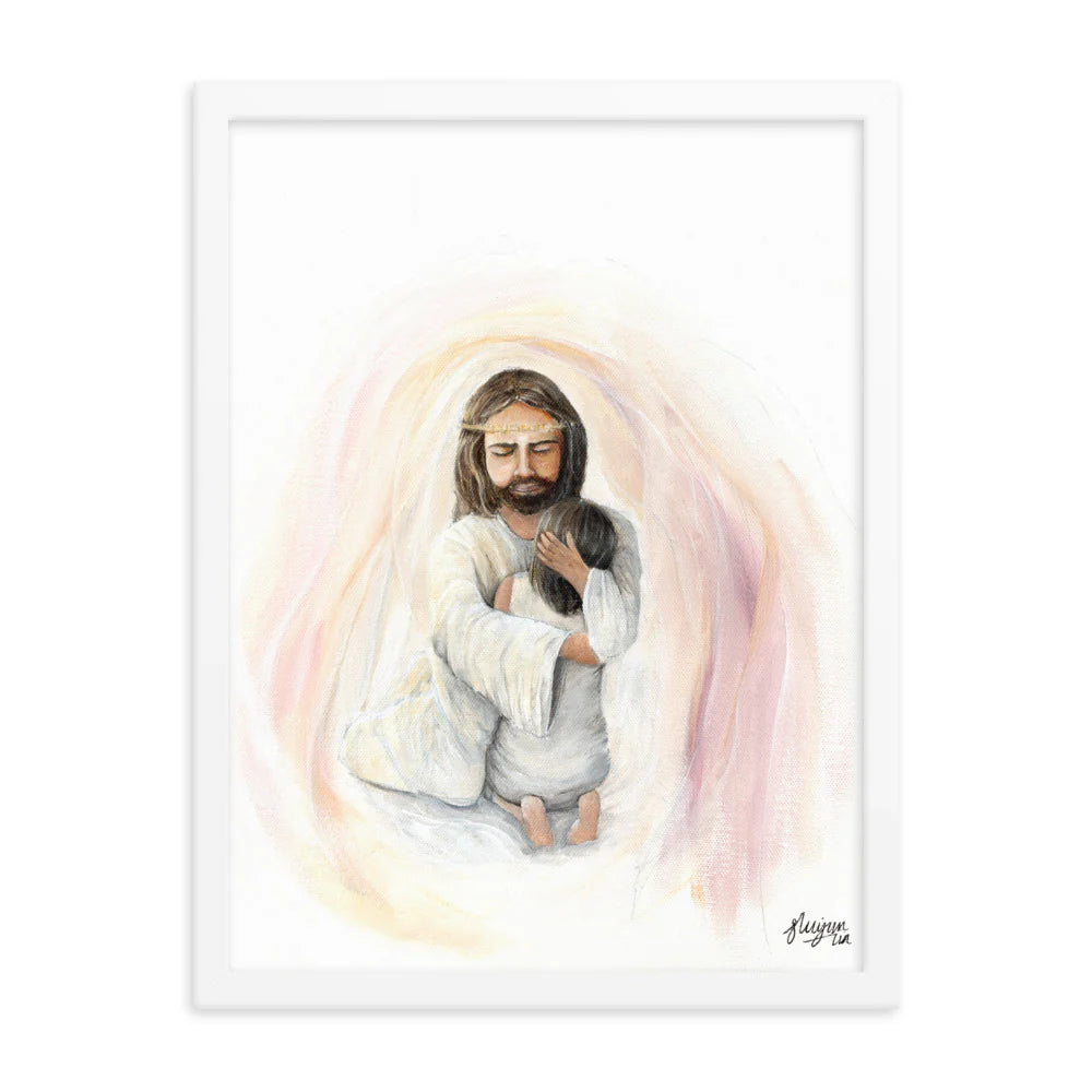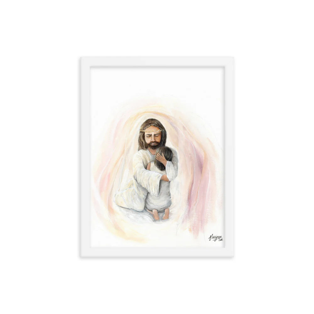 This artwork features a acrylic illustration of Jesus embracing a little girl. This artwork is a great gift to anybody that needs the comfort of the Father. Jesus understands what you are going through. It may also be something you want to remind yourself of on a daily basis by putting it up on your wall.
