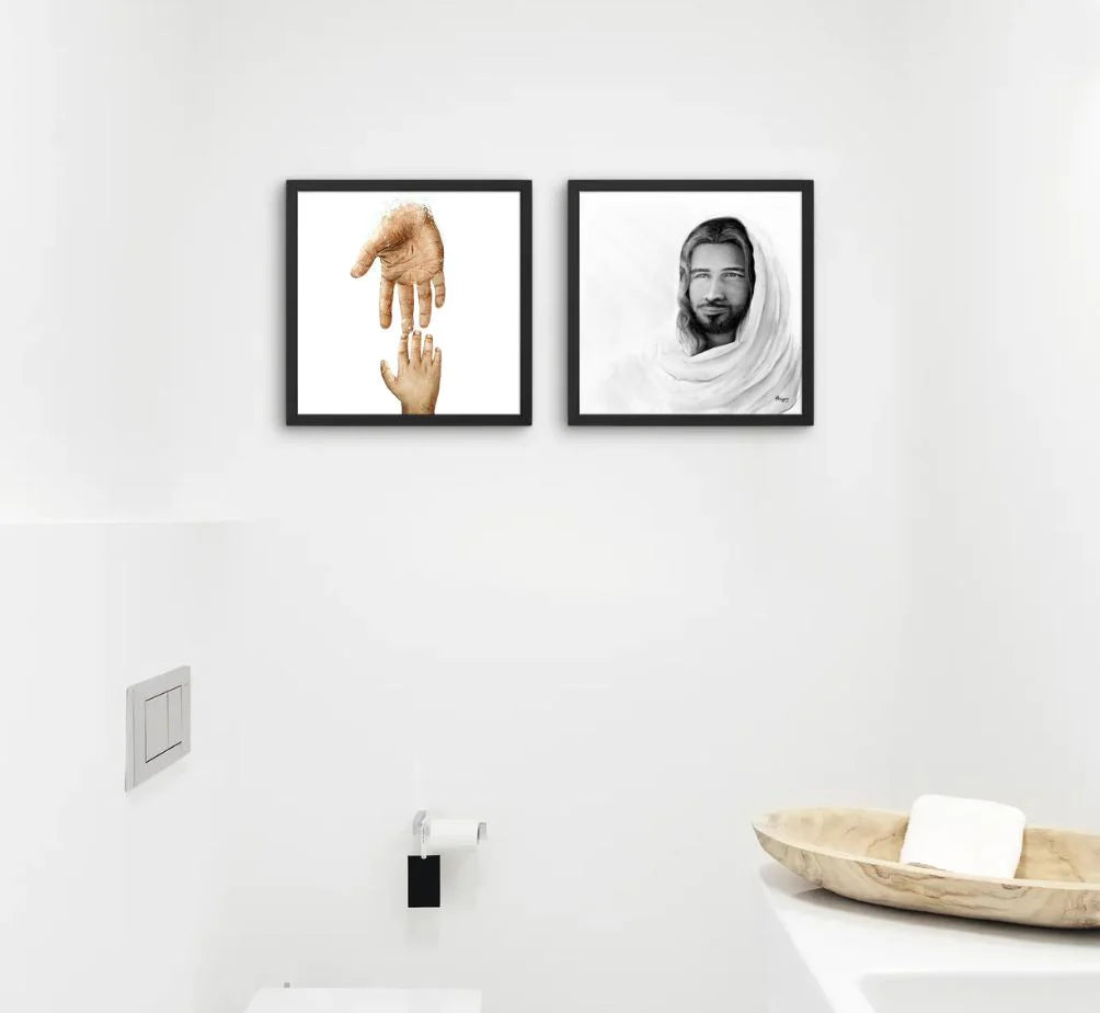 This artwork features an acrylic illustration of Jesus's hand reaching out to the sinking child's hand. This artwork is a great gift to anybody to encourage and strengthen their faith in God. It may also be something you want to remind yourself of on a daily basis by putting it up on your wall.