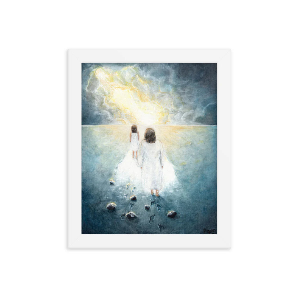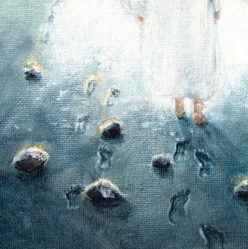This artwork features an acrylic illustration of Jesus walking behind the little girl-- walking in between the little girl's new path and her past. This artwork is a great gift to anyone who needs the newness of life that God has planned for each and everyone. It may also be something you want to remind yourself of on a daily basis by putting it up on your wall.