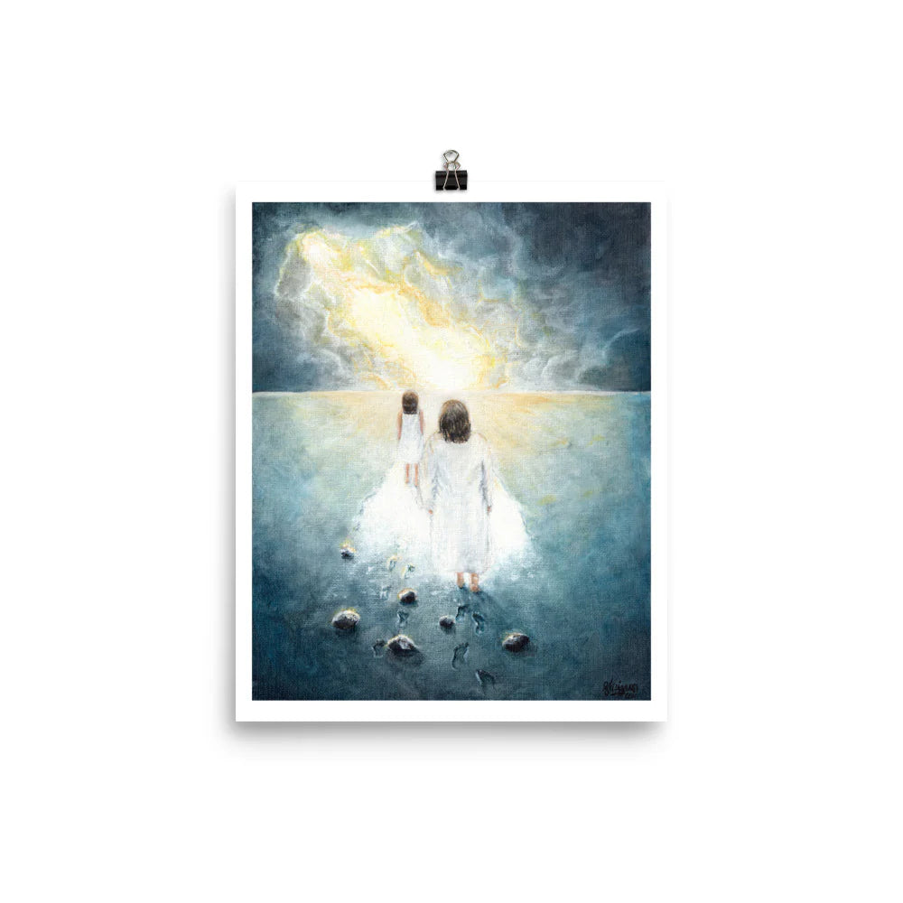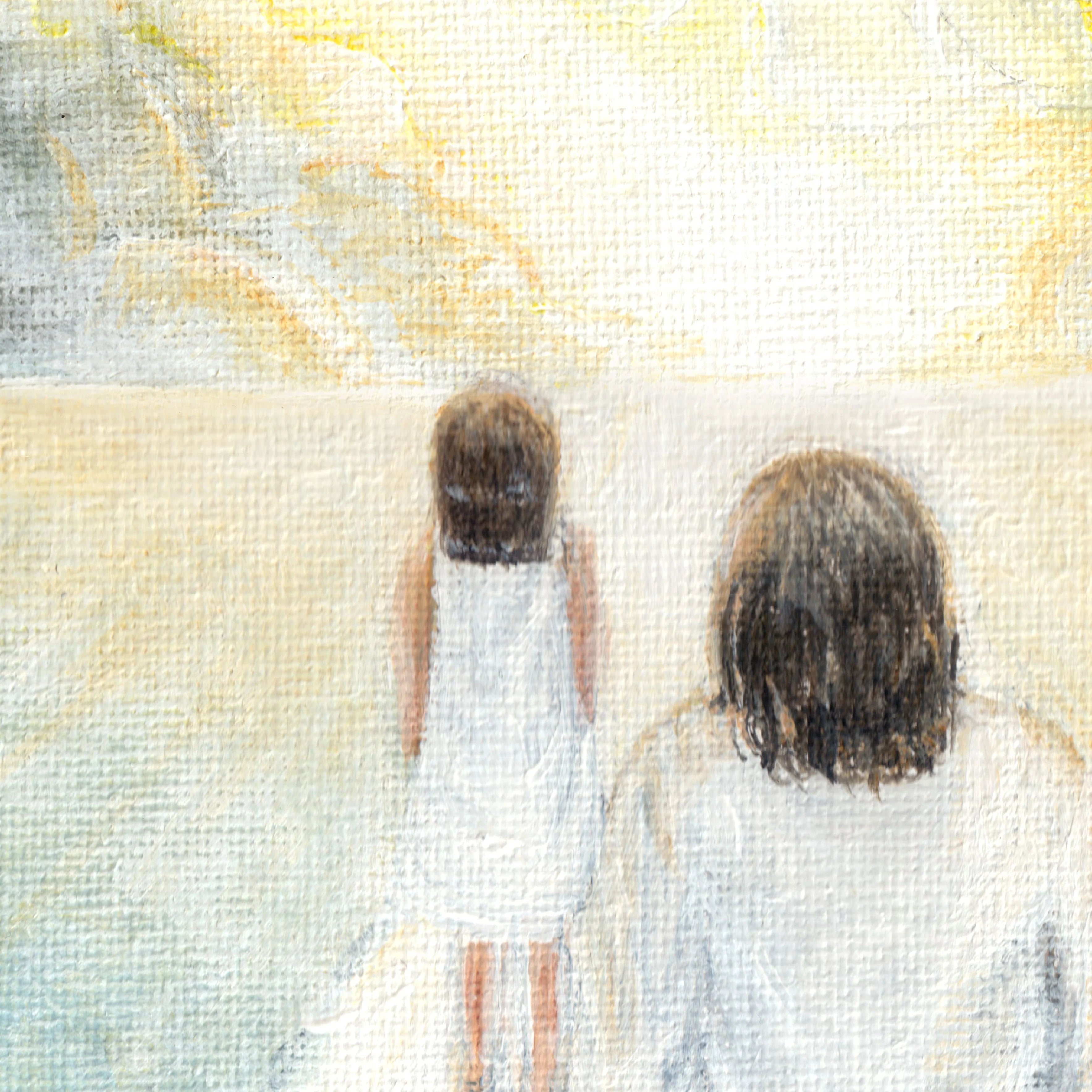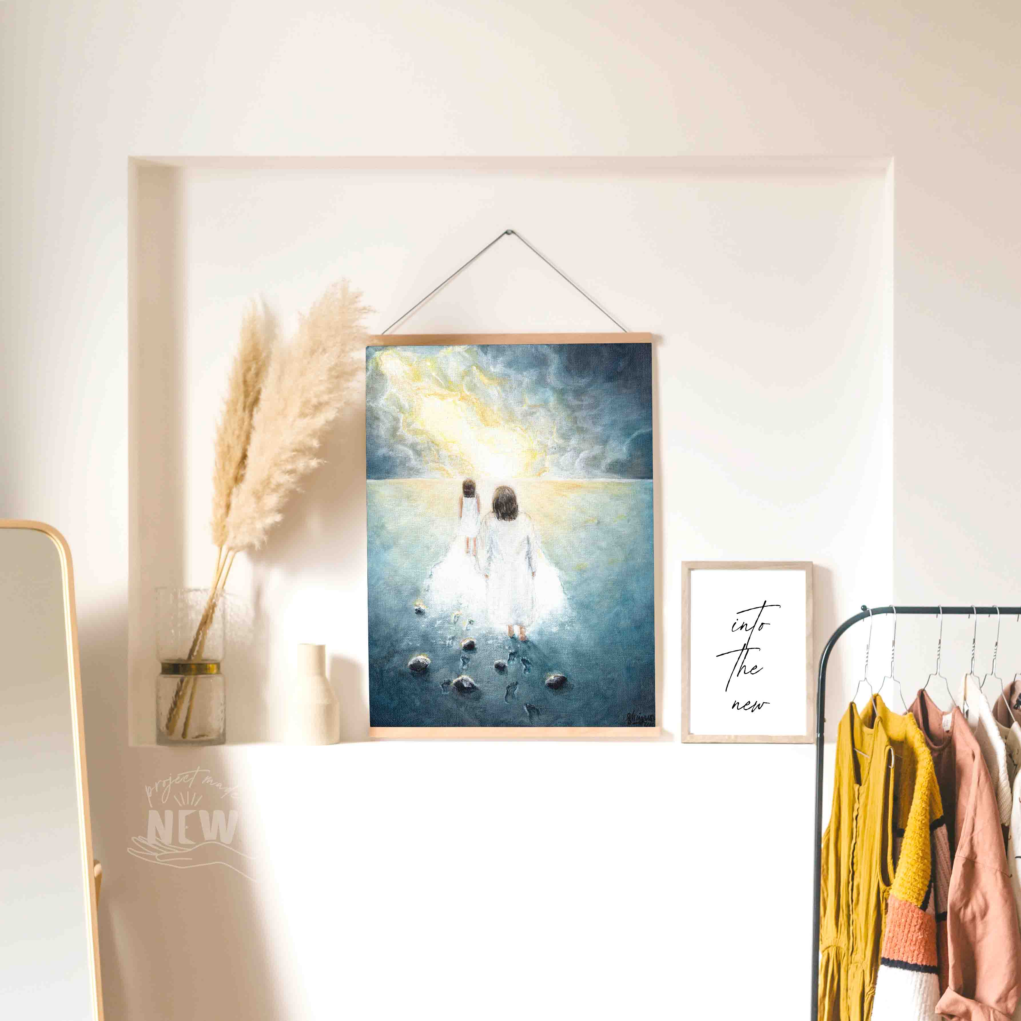 This artwork features an acrylic illustration of Jesus walking behind the little girl-- walking in between the little girl's new path and her past. This artwork is a great gift to anyone who needs the newness of life that God has planned for each and everyone. It may also be something you want to remind yourself of on a daily basis by putting it up on your wall.