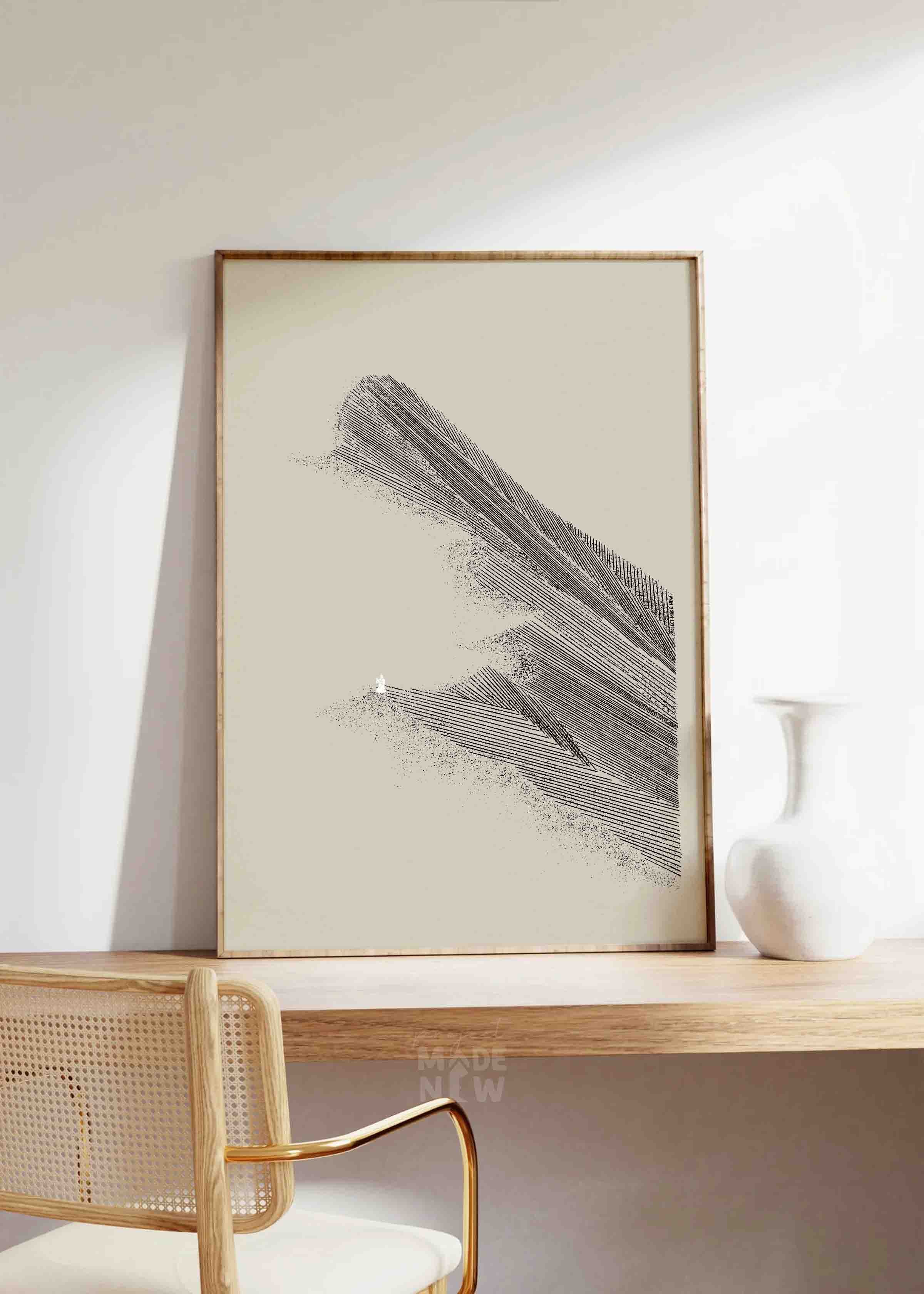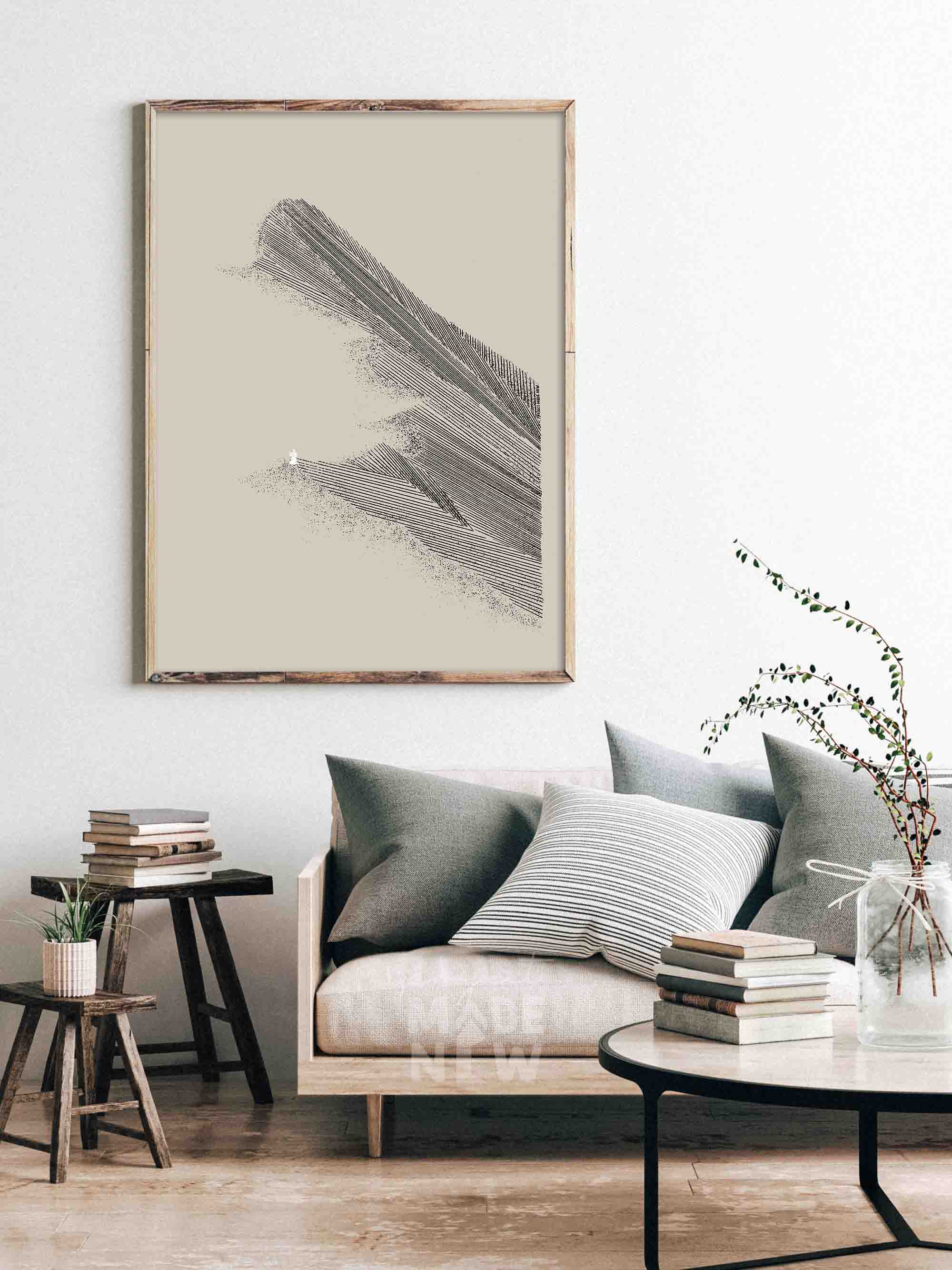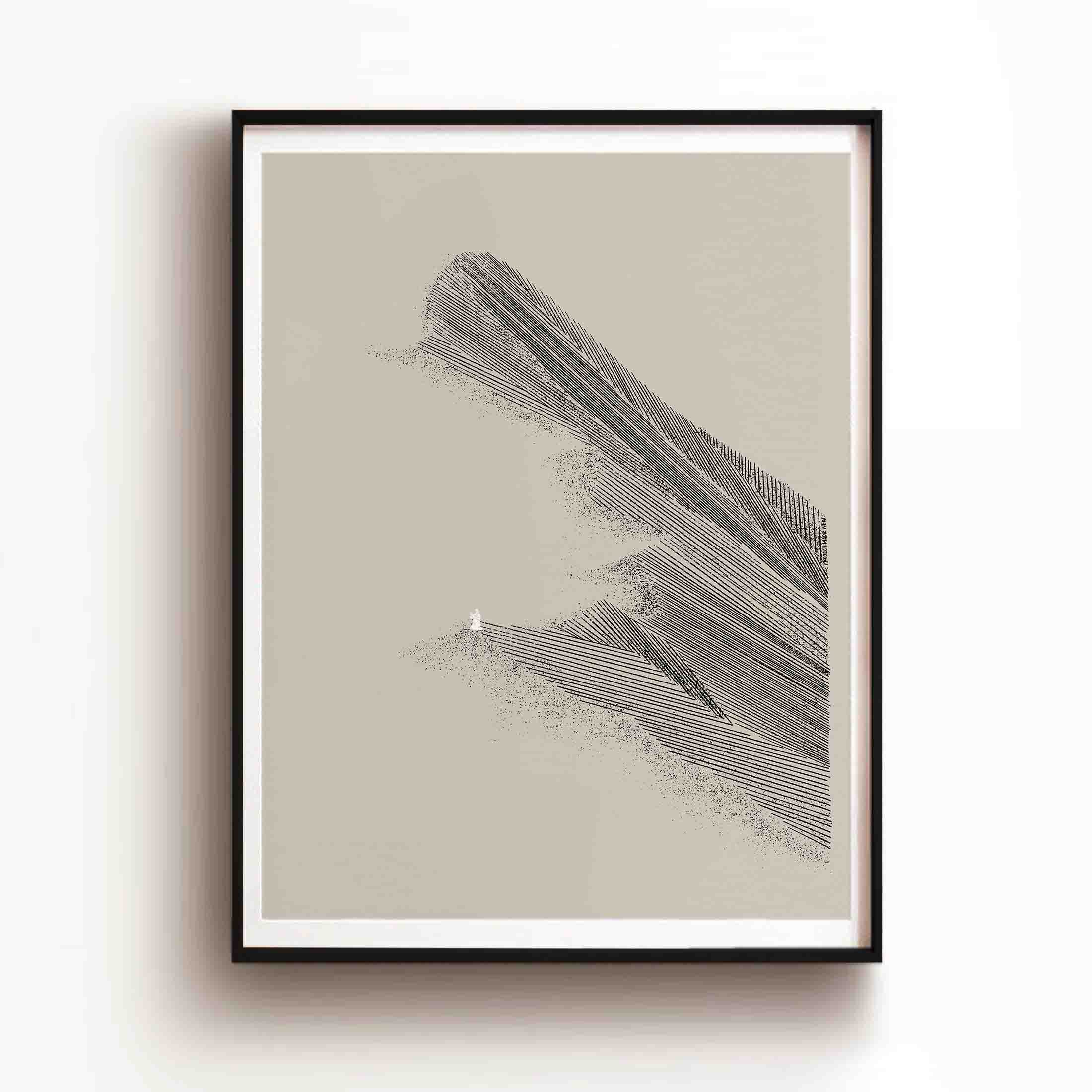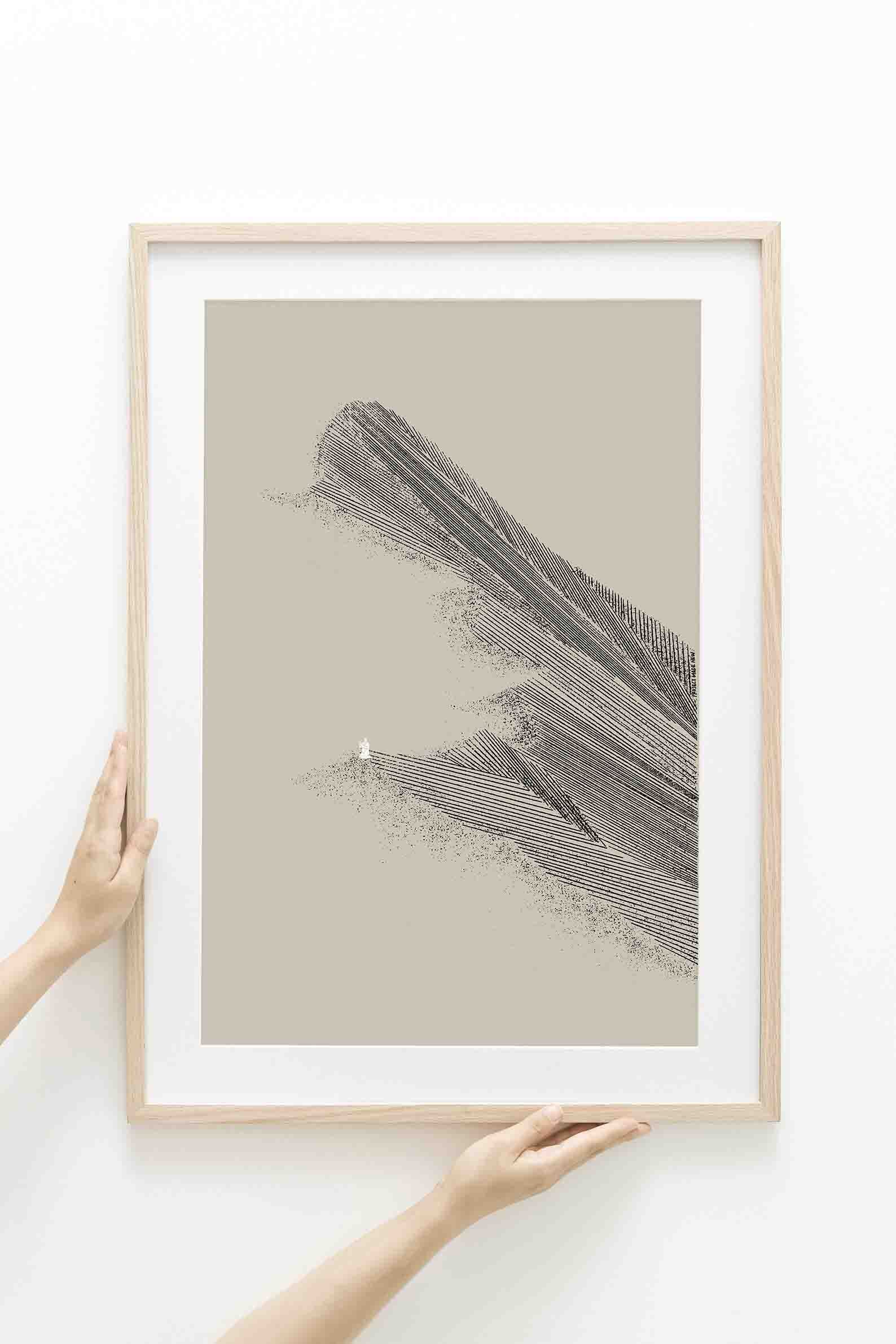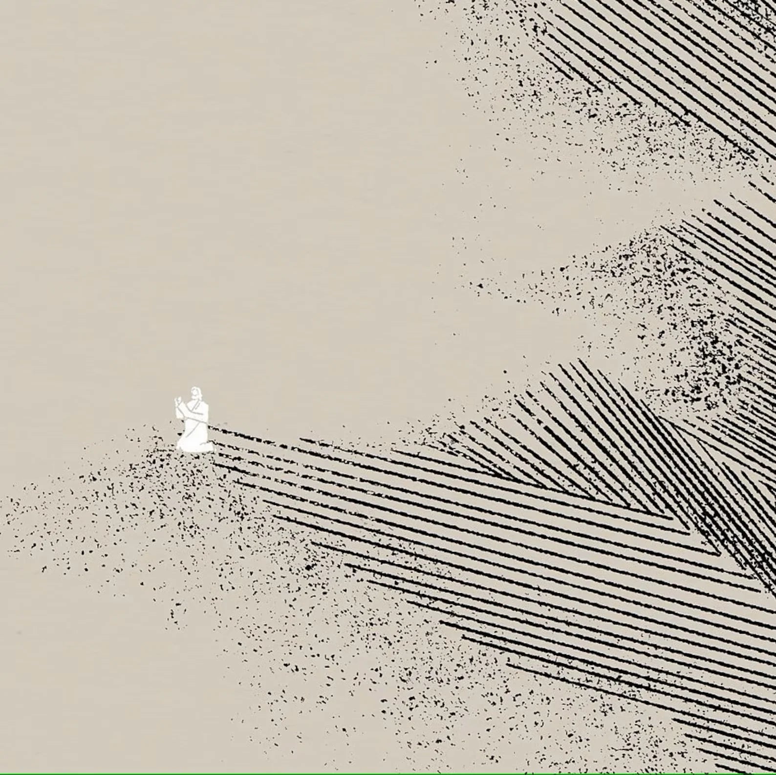 Minimalistic and modern digitally hand drawn art of Jesus retreating to mountain to pray alone.