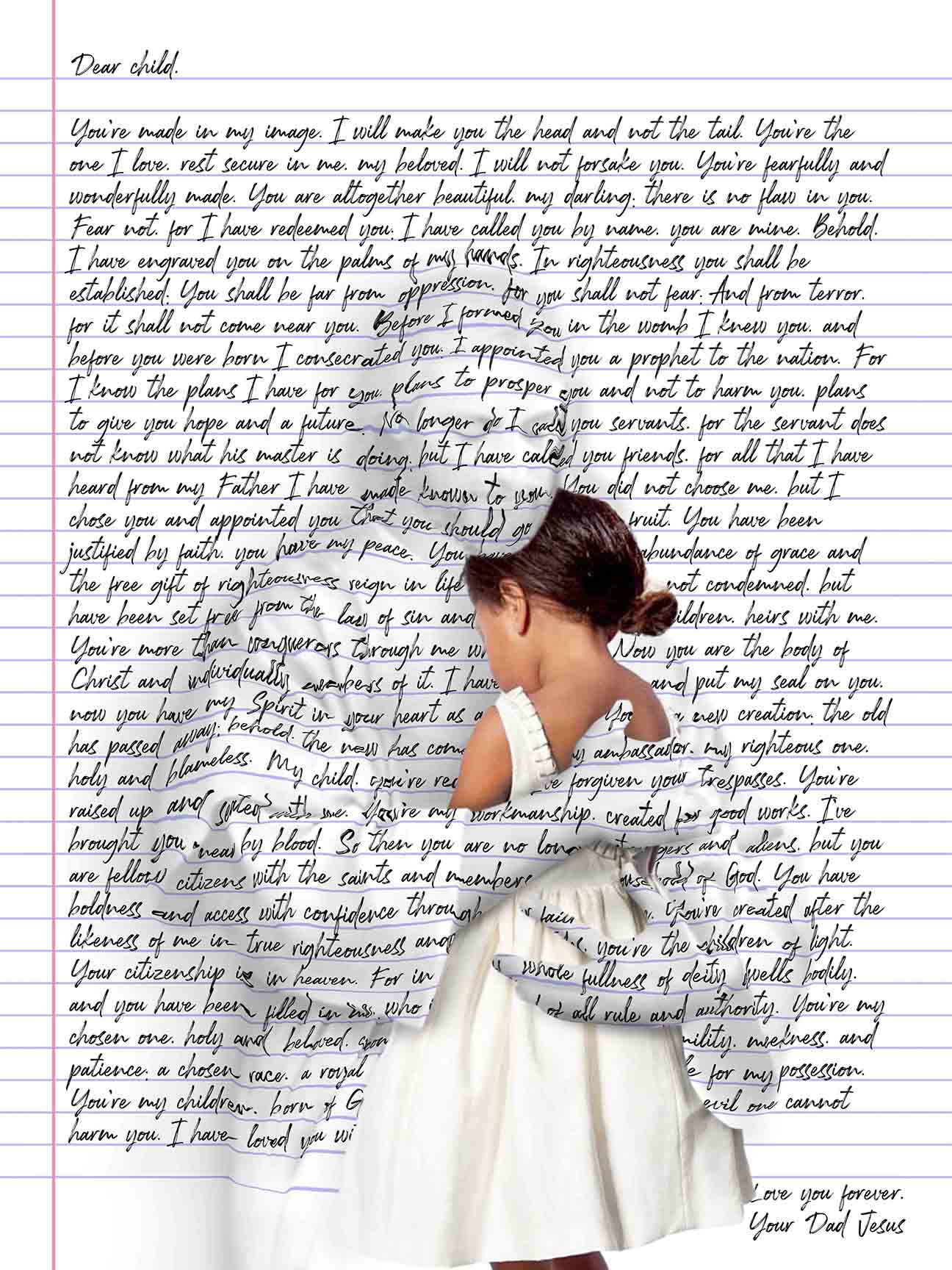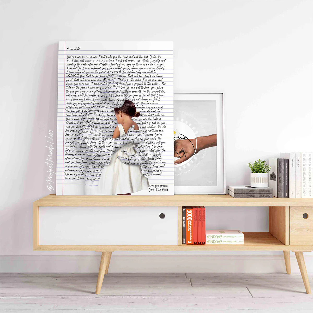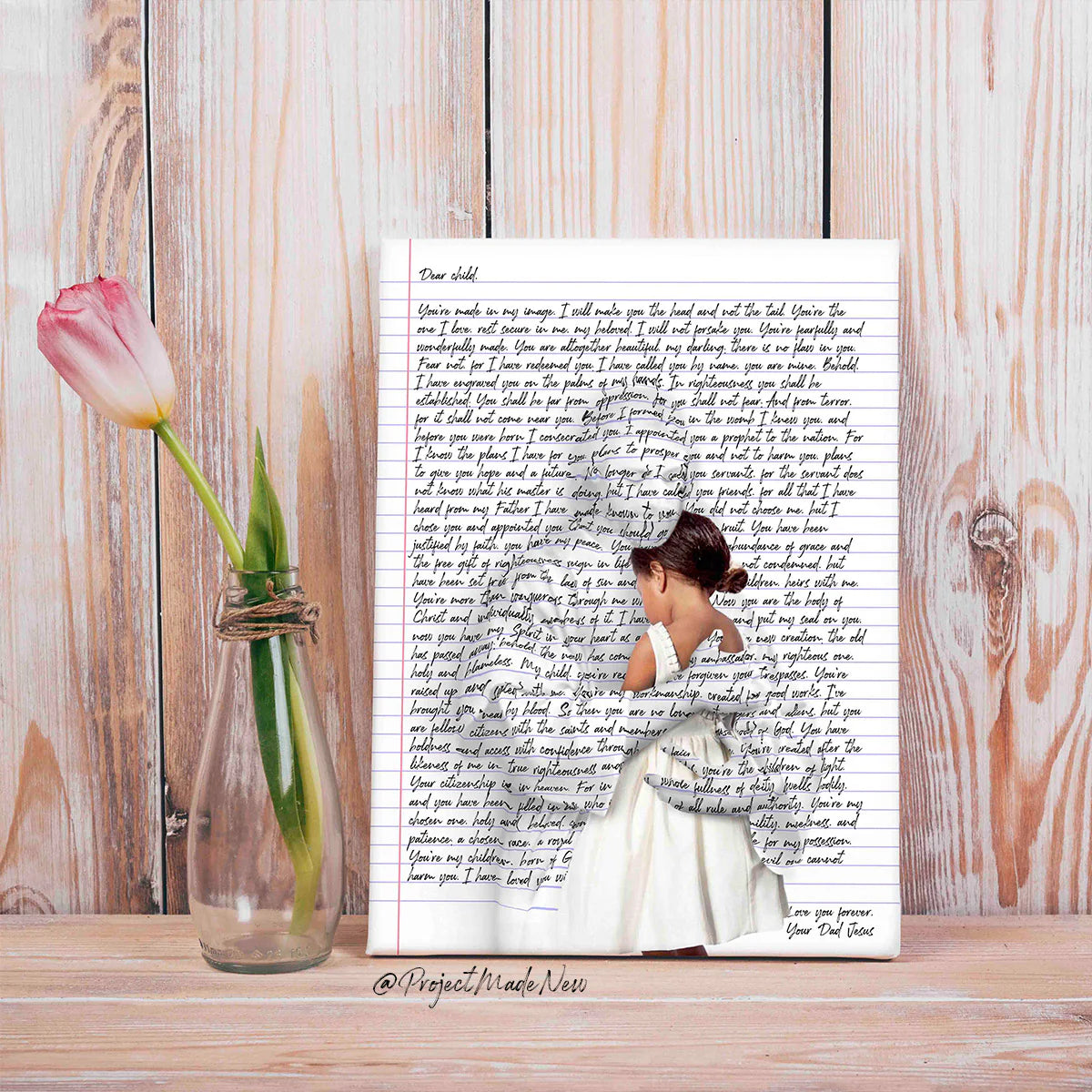 One-of-a-kind personalization letter from God on identity, it's as if God is speaking to you directly. This art piece is an illustration of a much more intimate and personal piece to be reminded everyday and grow in our sonship / daughtership with the Father. We want you to be reminded everyday of your life of the truth of who you are.