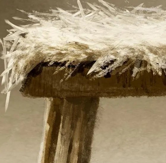 Modern Biblical art of the Nativity scene of the birth of baby Jesus.