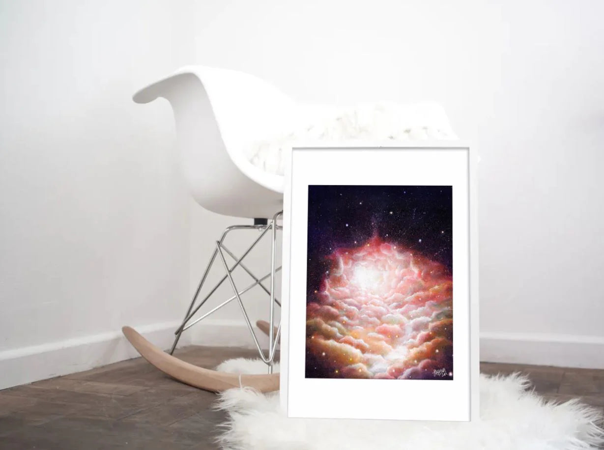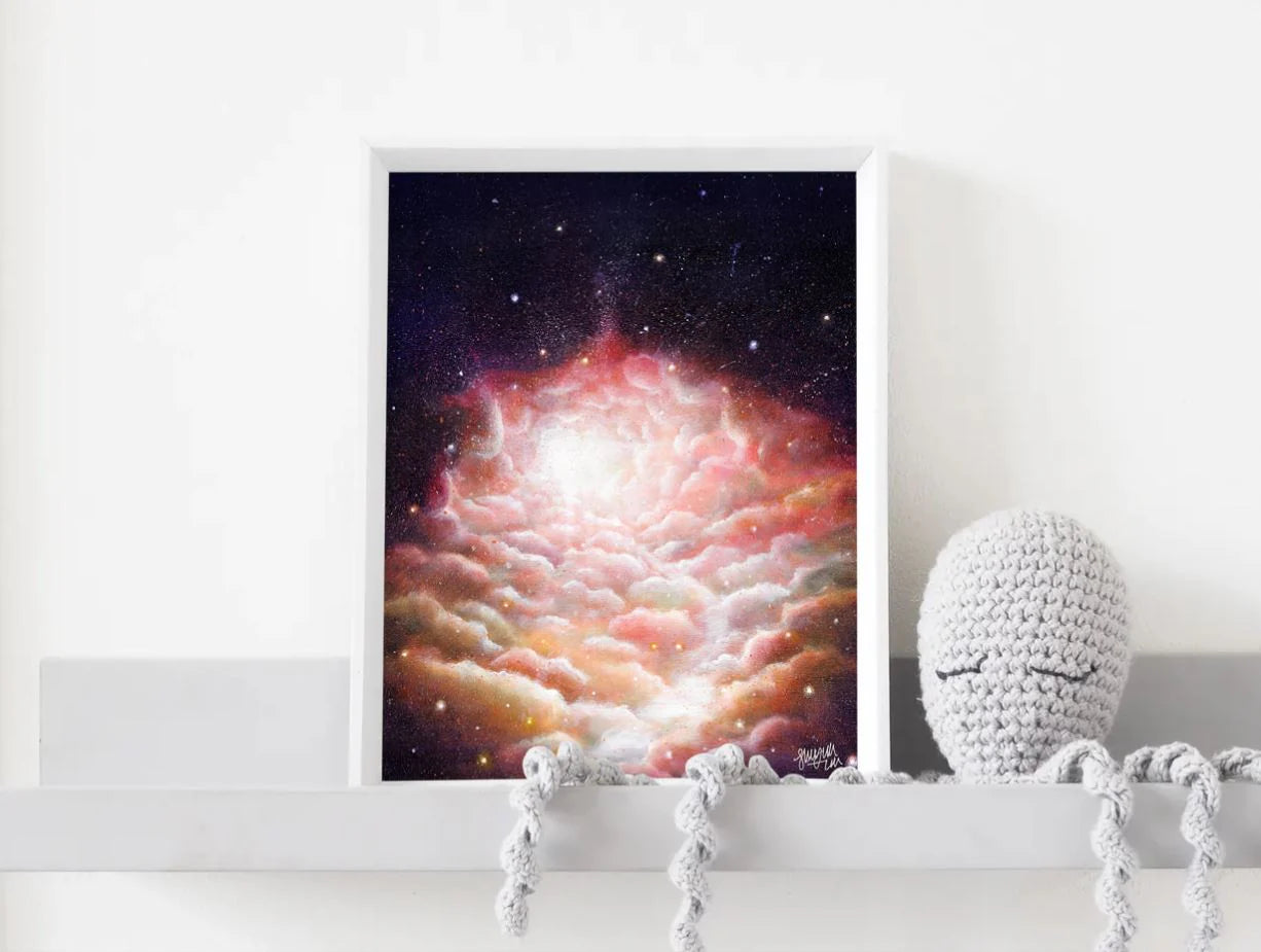 This artwork features a soothing red heavenly atmosphere of acrylic illustration that evokes the warmth & love of God. This artwork is a great gift to anybody who needs to be reminded of God's perfect love. It may also be something you want to remind yourself of on a daily basis by putting it up on your wall.
