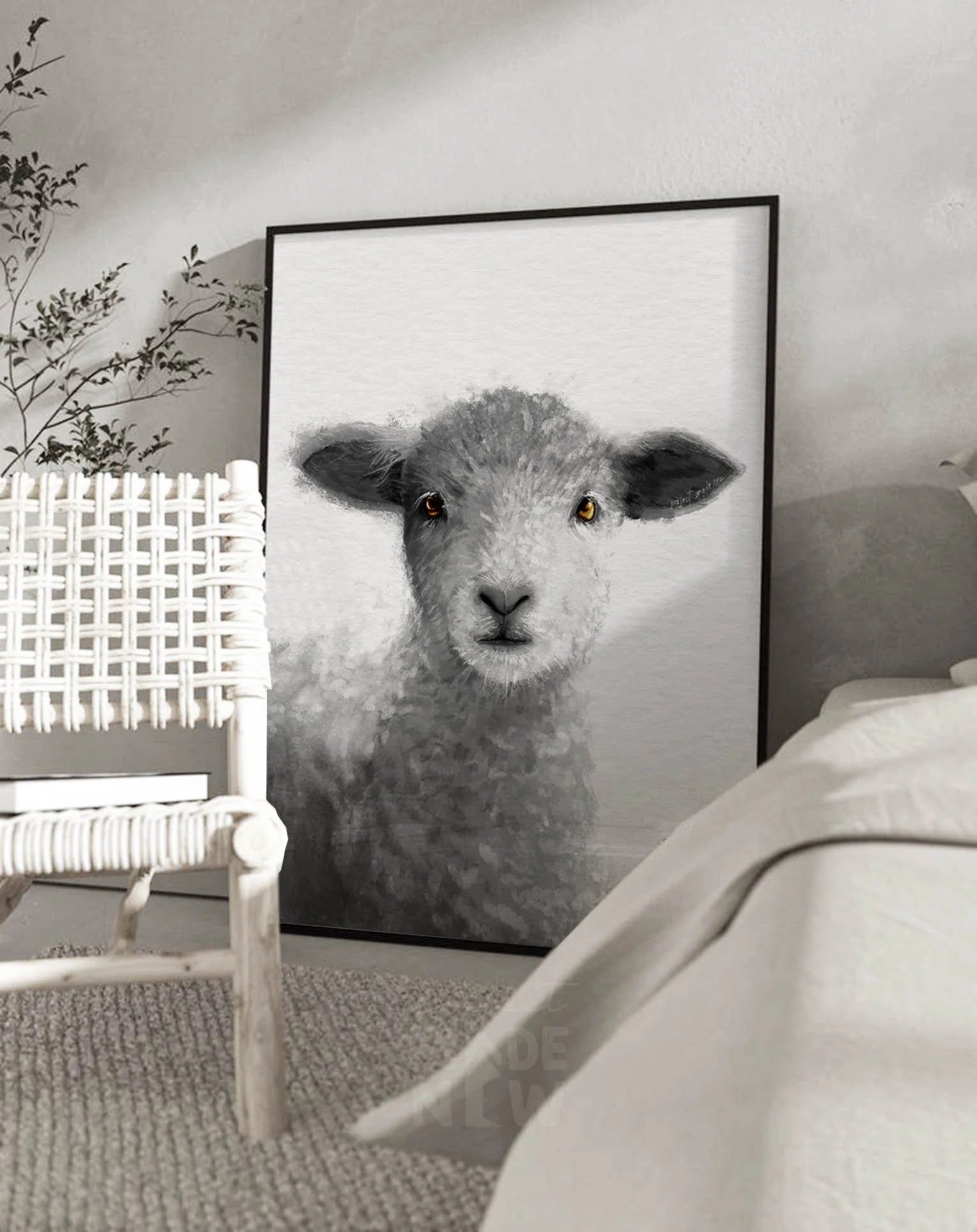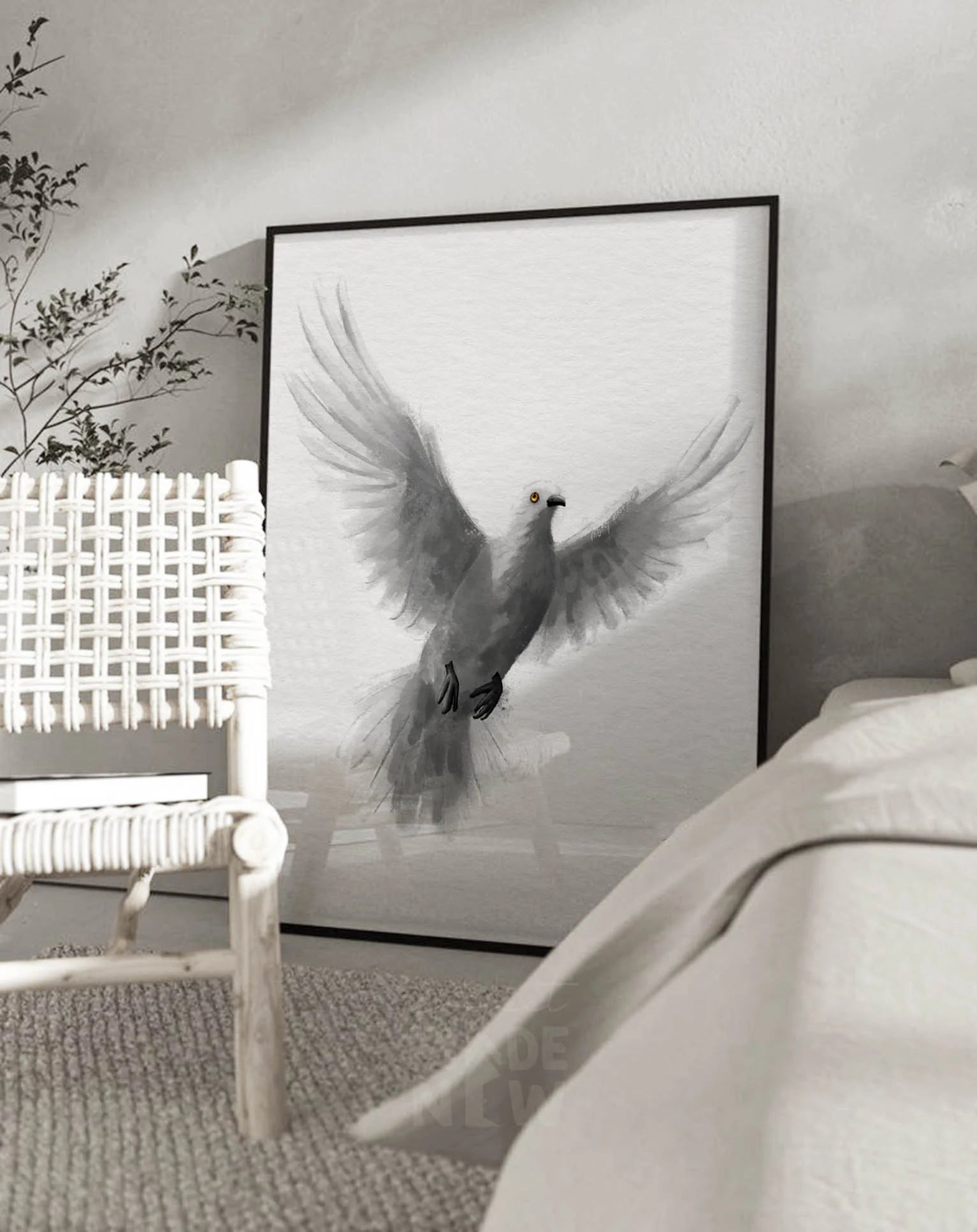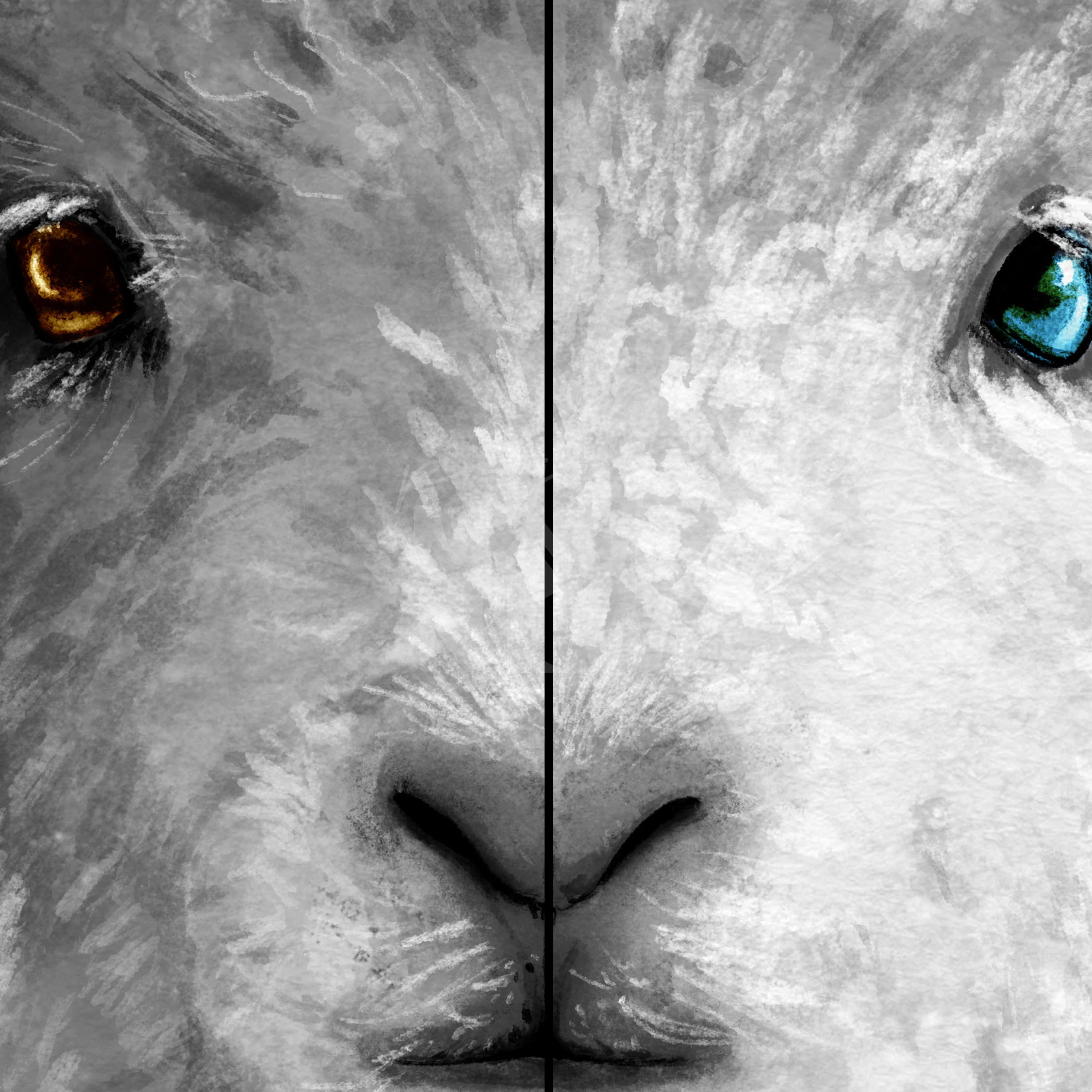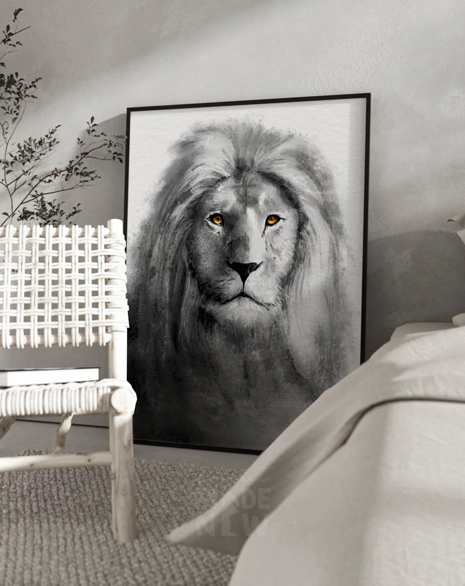 Set of 3 original black and white watercolor artworks (Lion, Lamb, and Dove). Available in golden or blue eyes.