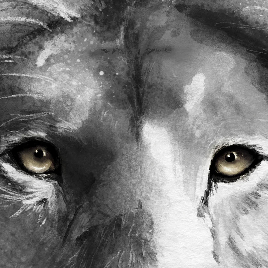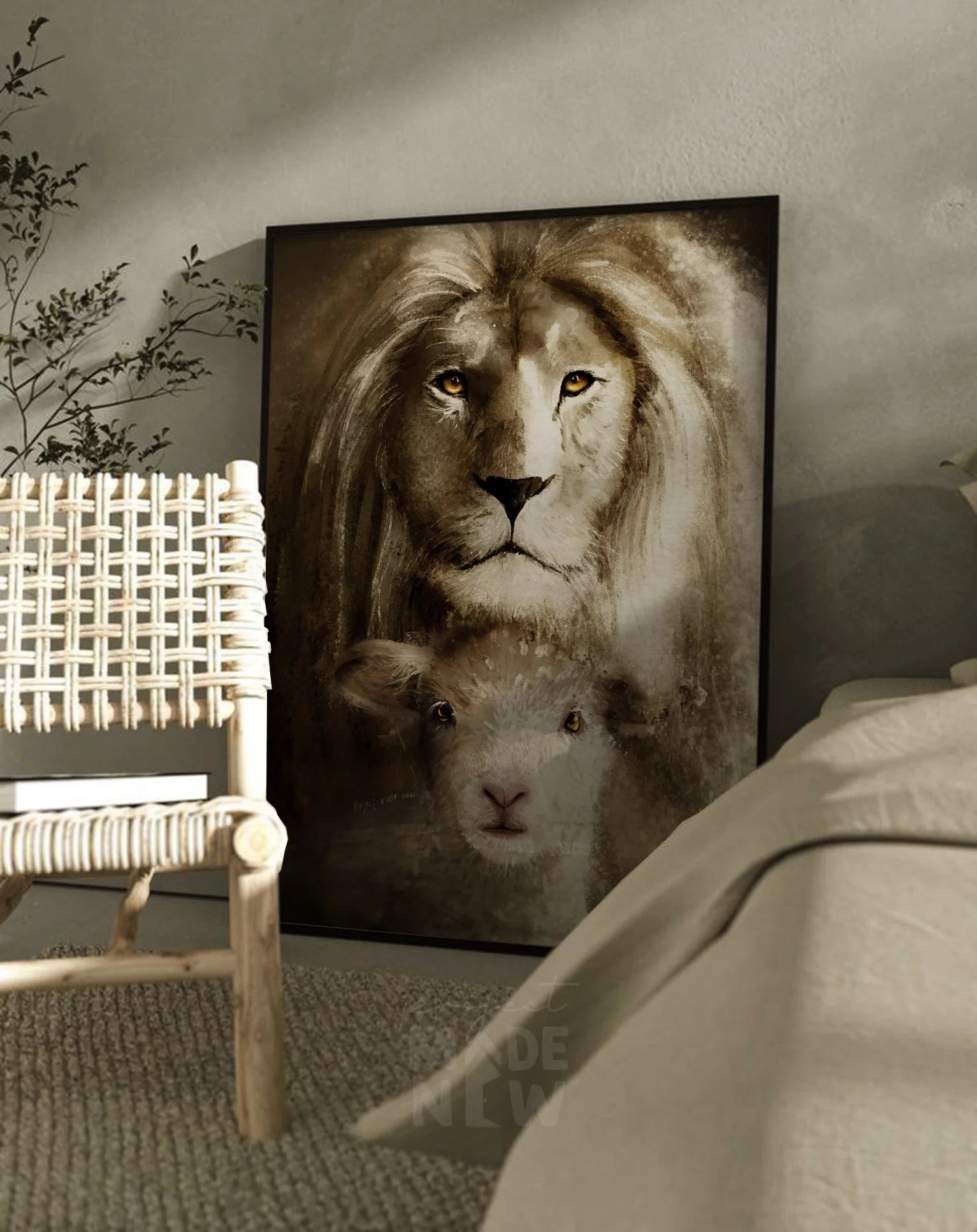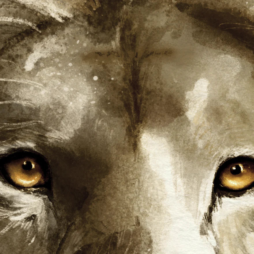Painting of the Lion who reigns forever and the Lamb who came to redeem. In Him, justice and grace meet perfectly.