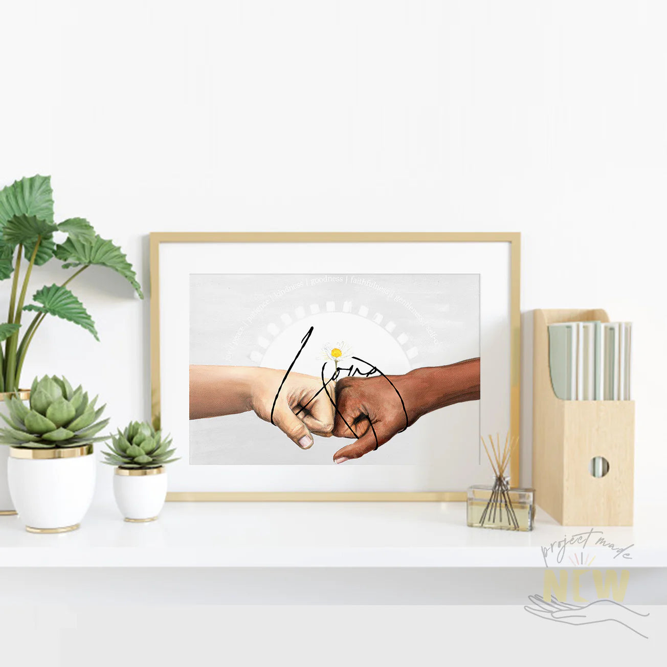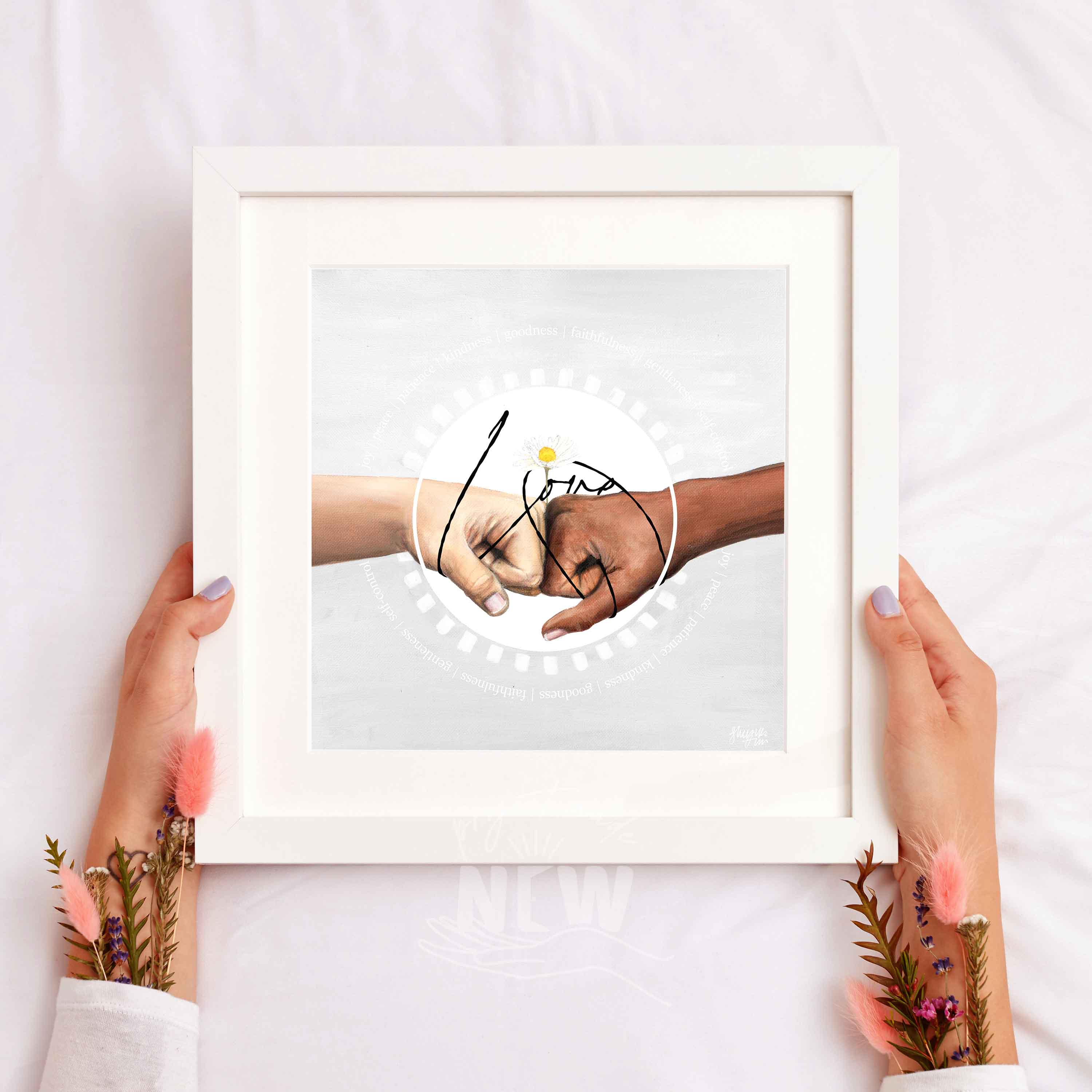 This artwork features an acrylic illustration of fist bump with different races. This artwork is a great gift to anybody who needs to be reminded of the fruit of the Spirit. It may also be something you want to remind yourself of on a daily basis by putting it up on your wall.